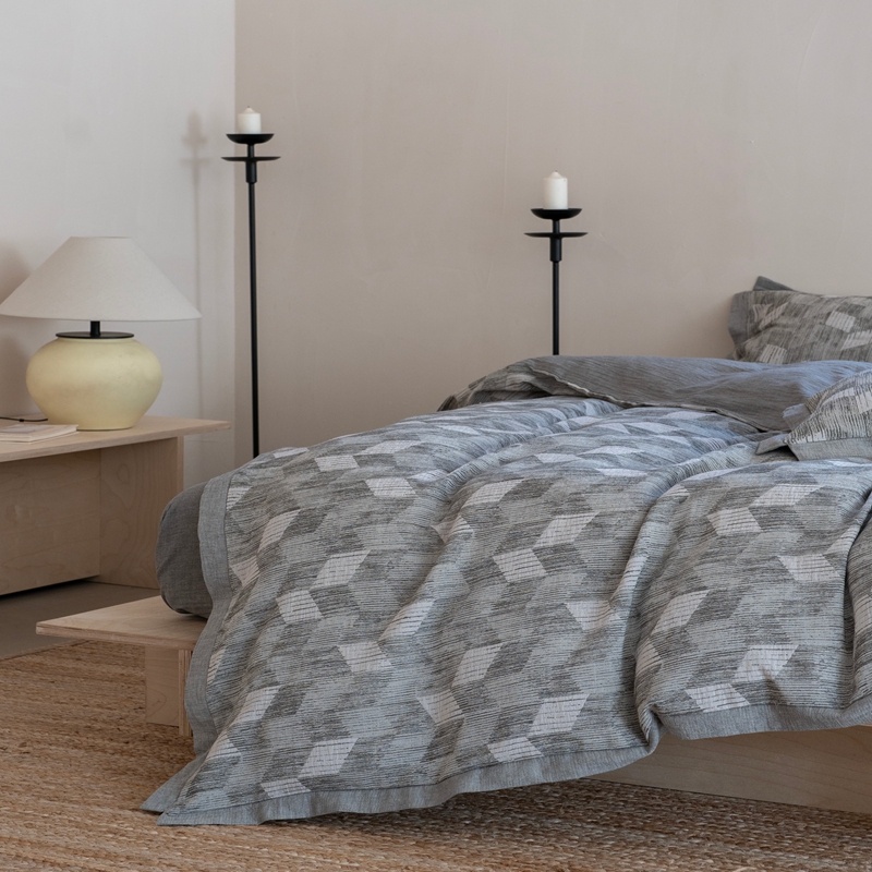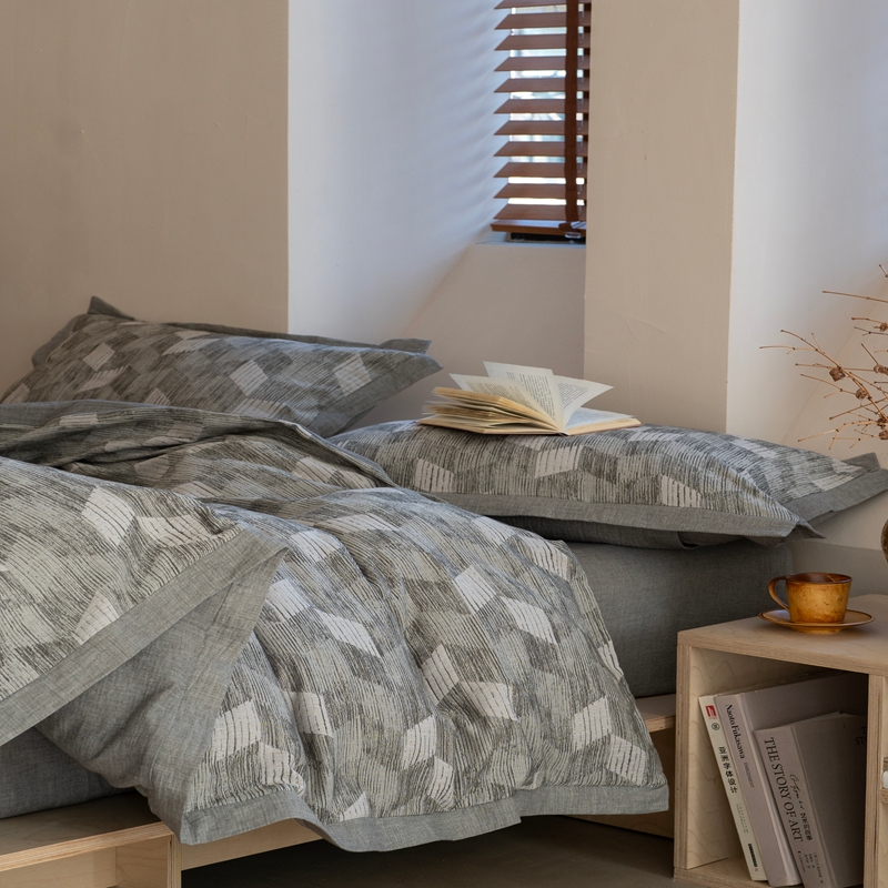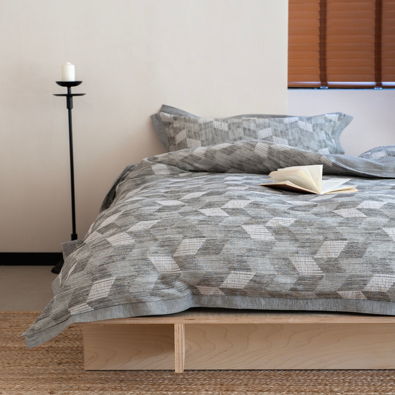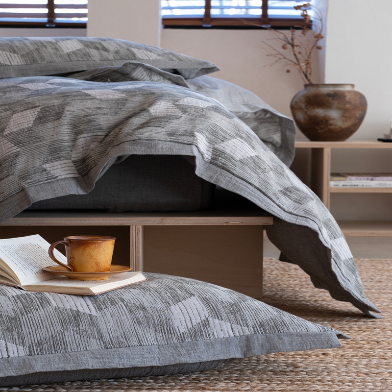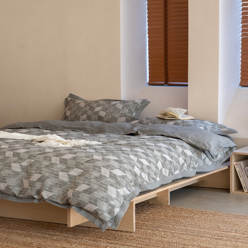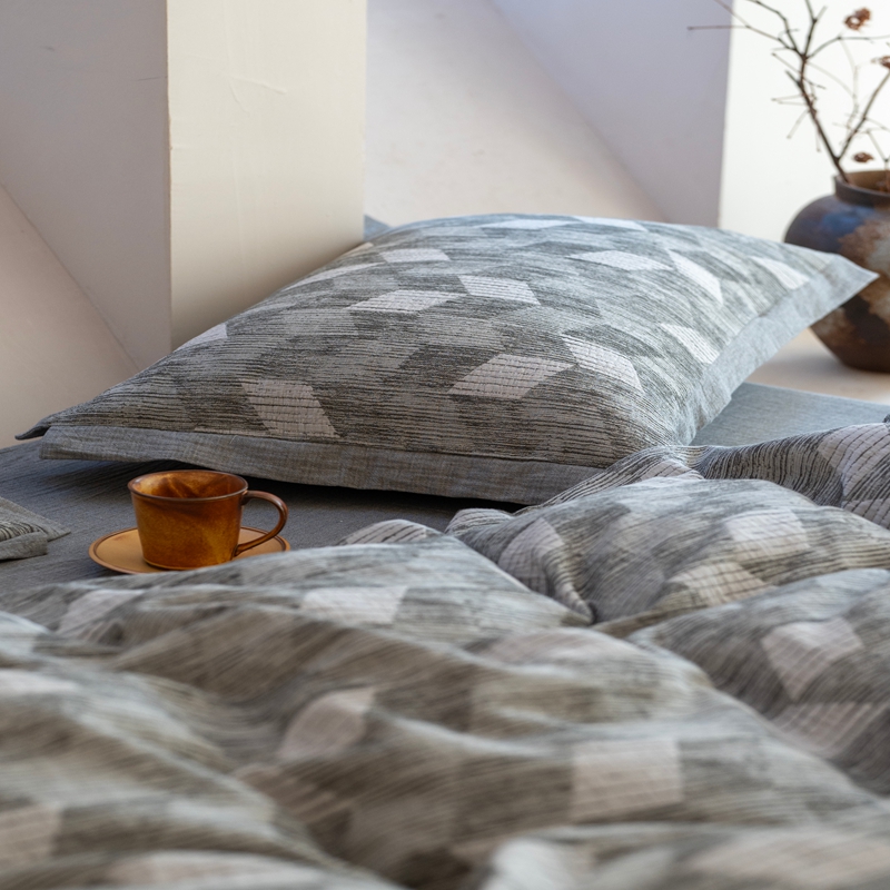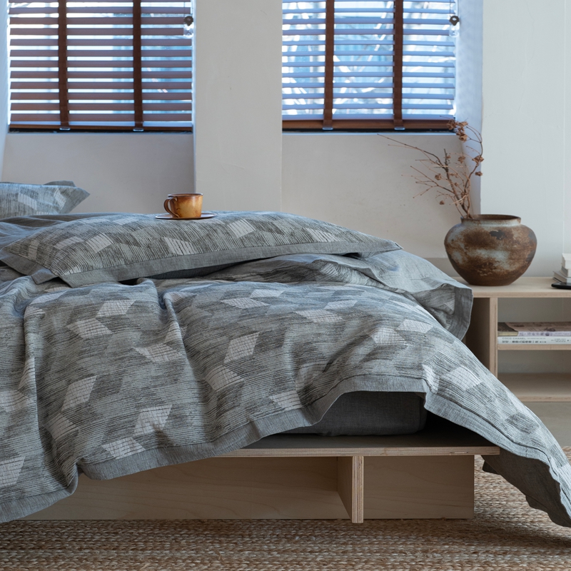 商品名称:璞素2025新款全棉色织三层纱四件套 灰色