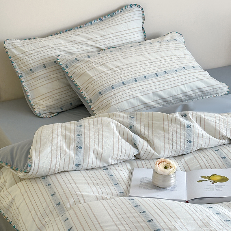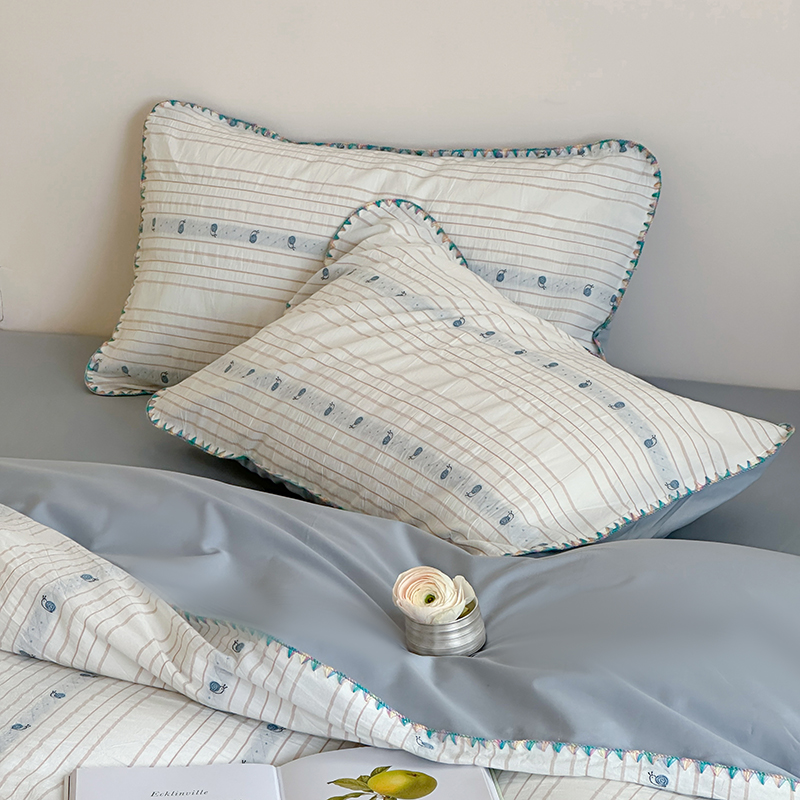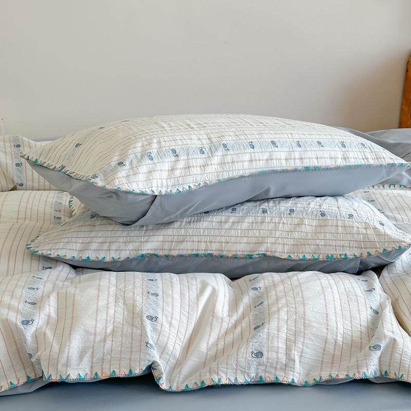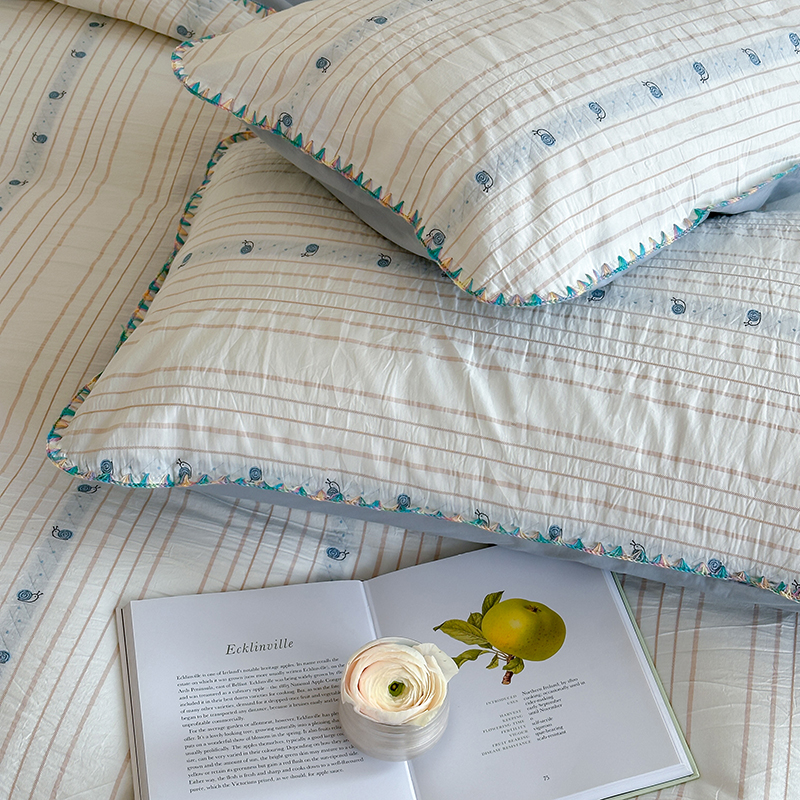商品名称:觅糖家纺 2025新款色织提花贝壳边三角针系列四件套 蓝色蜗牛