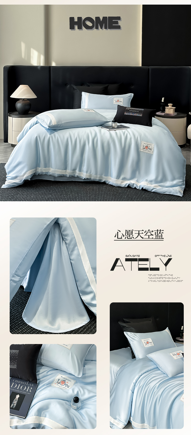 商品名称:金麦家纺 2025新款冰丝绣花四件套-心愿系列 心愿天空蓝