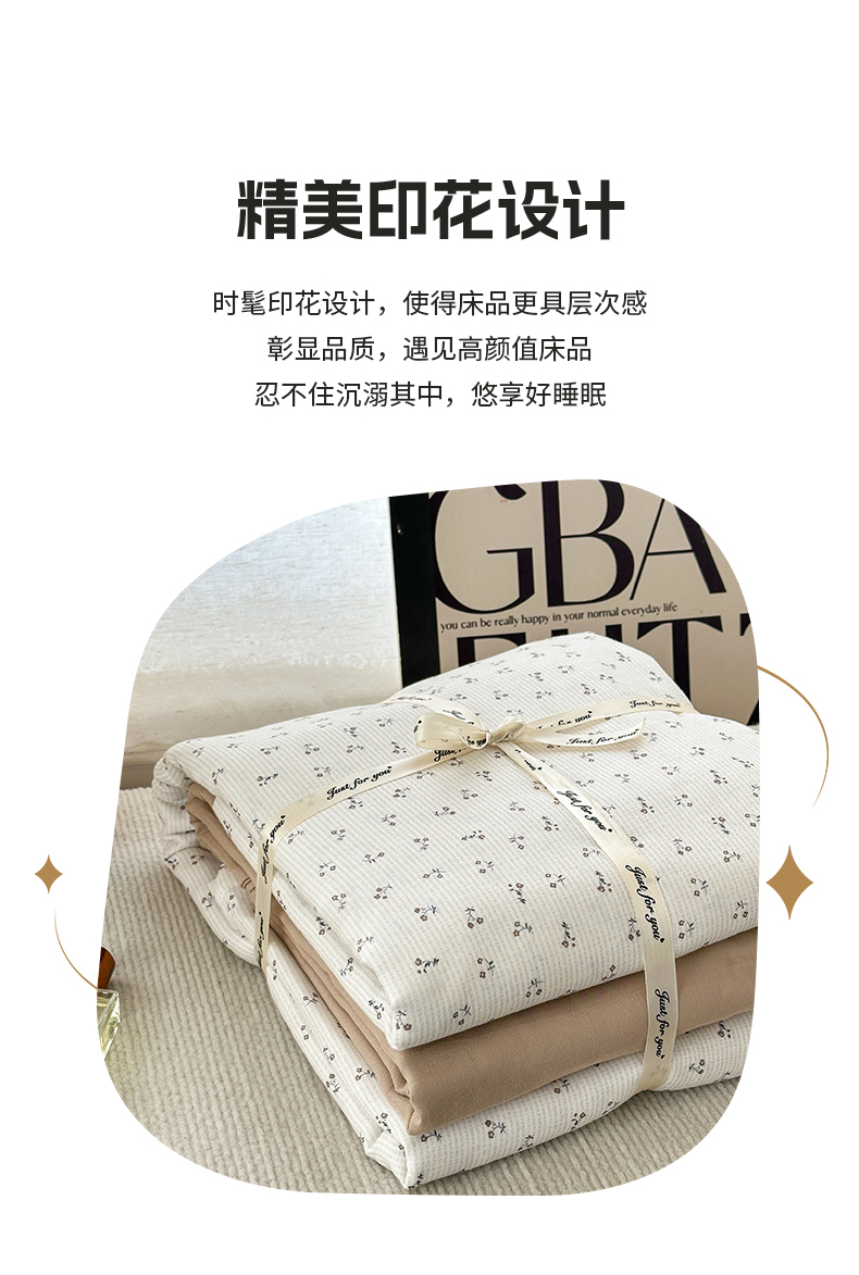 当前位置: 91家纺网 > 商品网购 > 床品套件 > 四件套 > 双层纱四件套 > 亿梵家居 2025新款A类母婴级有氧全棉纯棉双层纱纯棉印花四件套-叠拍图 素锦-咖