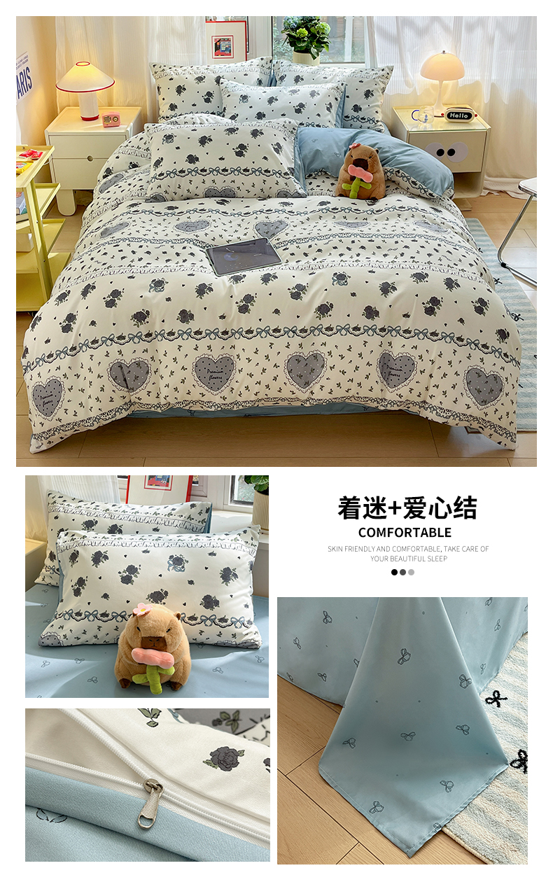 商品名称:盛秋家纺 2025新款卡通单被套 着迷+爱心结