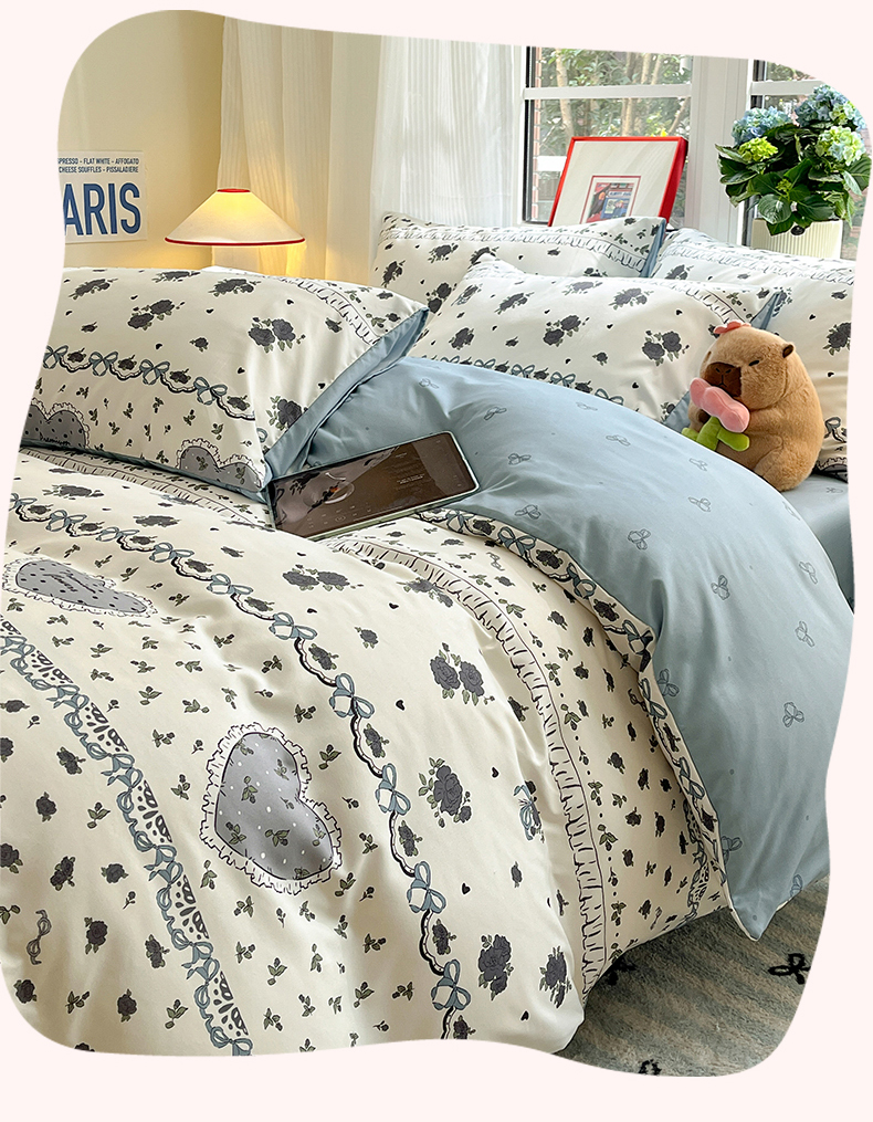 盛秋家纺 2025新款卡通单被套 着迷+爱心结