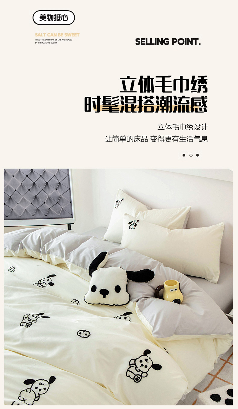 (总)倾慕家纺 2025新款卡通毛巾绣加厚保暖牛奶绒四件套,爱心女孩,咖啡小狗,猫咪熊兔,迷你小车,圣诞树熊,音乐企鹅