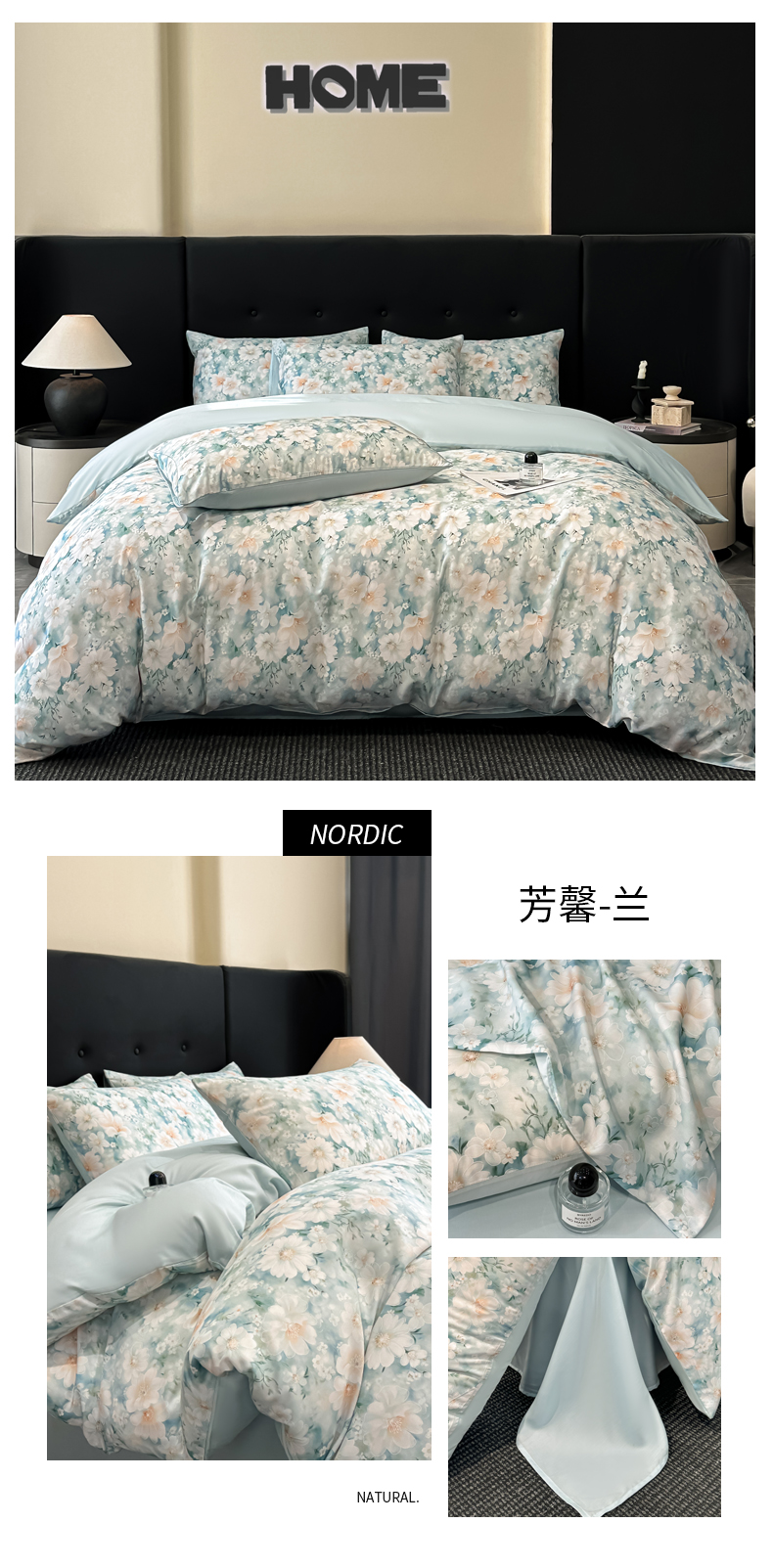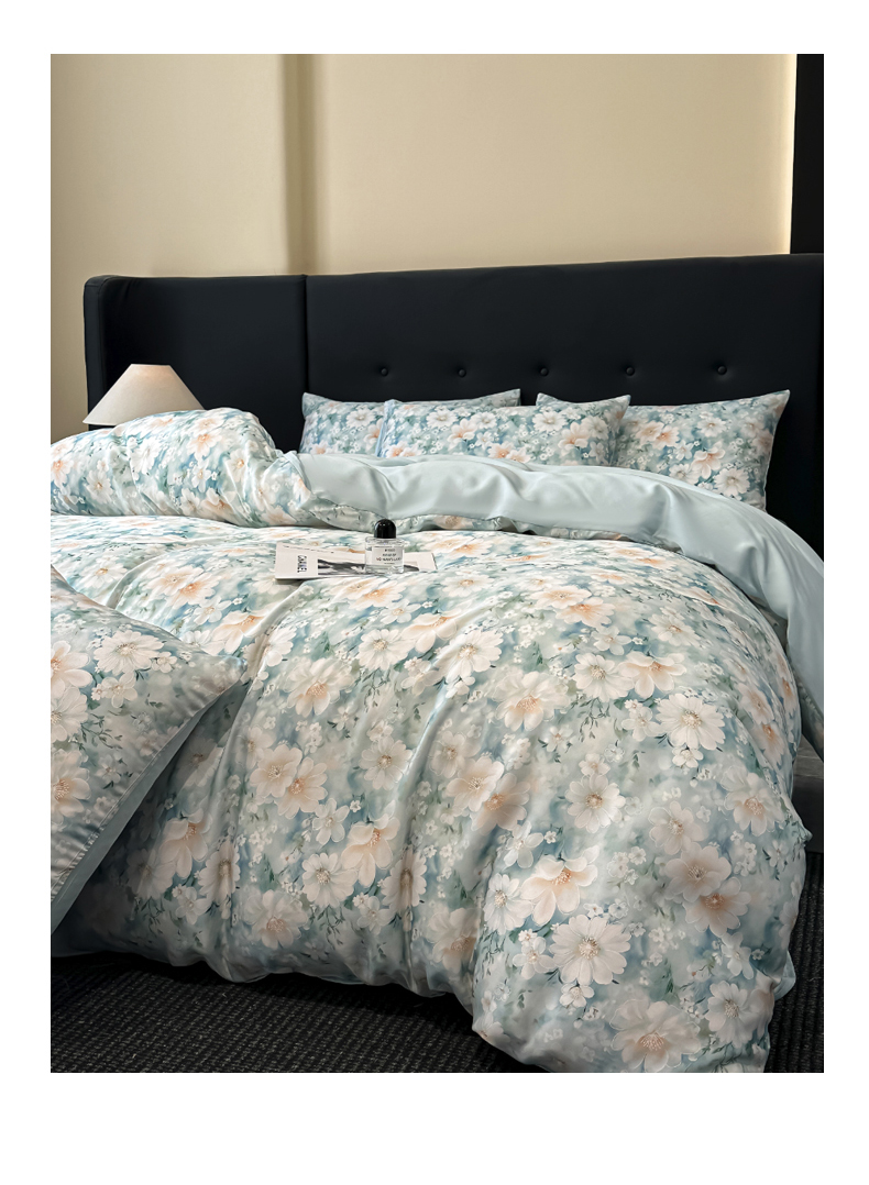 商品名称:慕晨 2025春夏新品莱赛尔天丝数码印花四件套莱赛尔夏被四件套天丝夏凉被直播热款 芳馨-兰