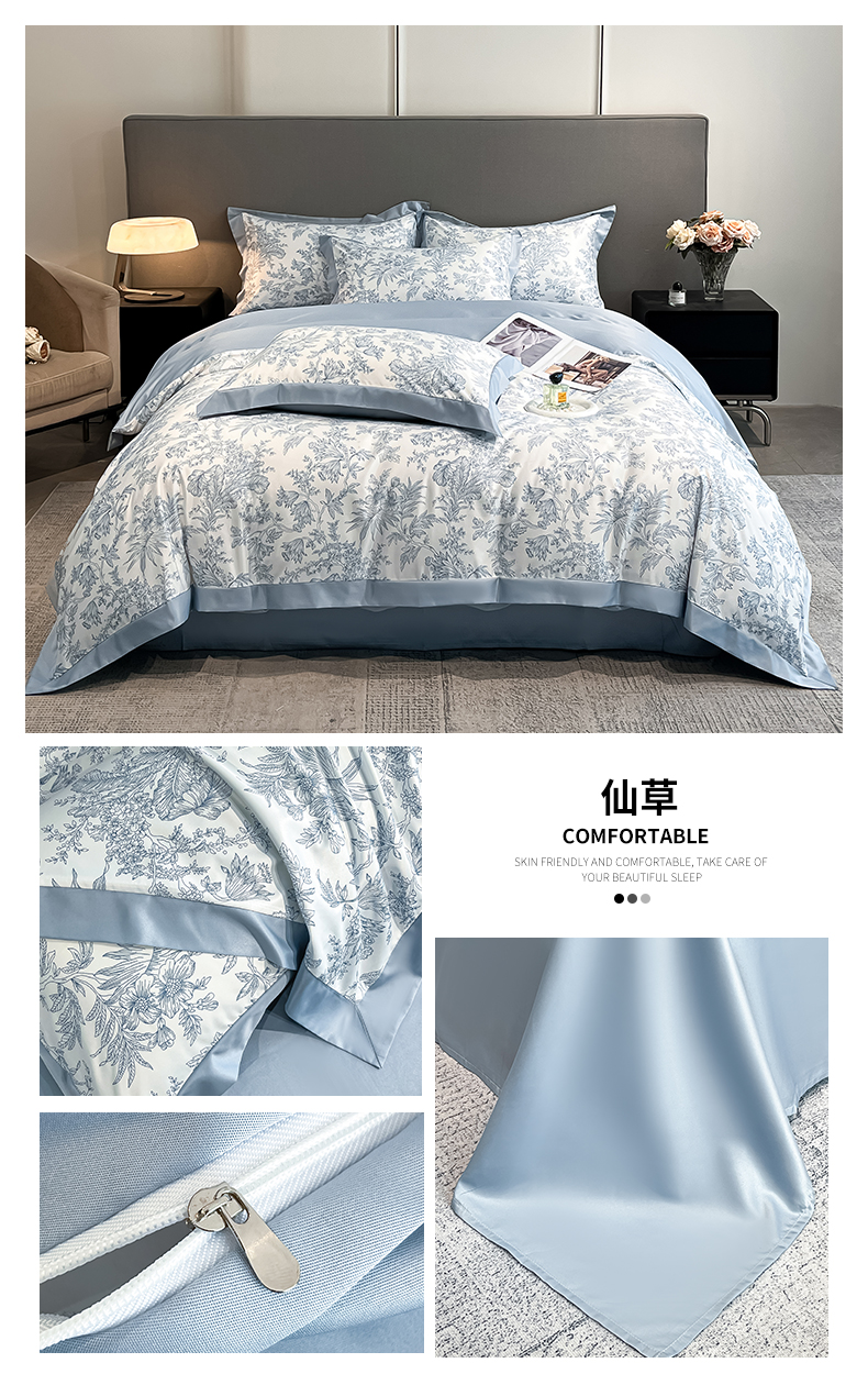 笙意家纺 2025新款水洗冰丝数码印花宽边四件套 仙草