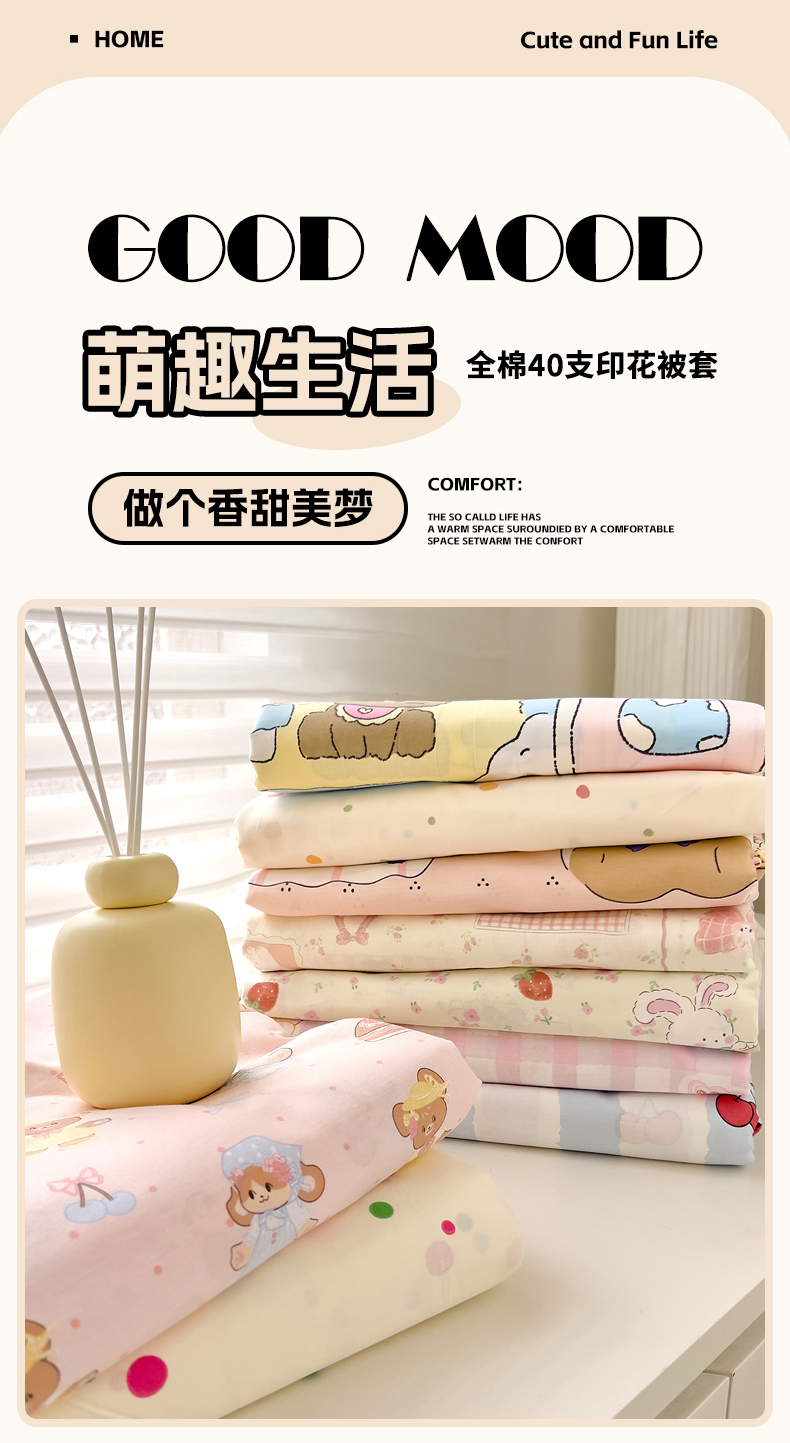 (总)DoDo 兜兜 2025新款卡通全棉纯棉小清新单品被套系列 (可定做尺寸),爱豆熊,豹纹小熊,多彩笑脸,粉粉猫,狗狗家族,假日小狗,萝莉兔,蘑菇小狗,围裙小熊,小狗笔记,星星仔