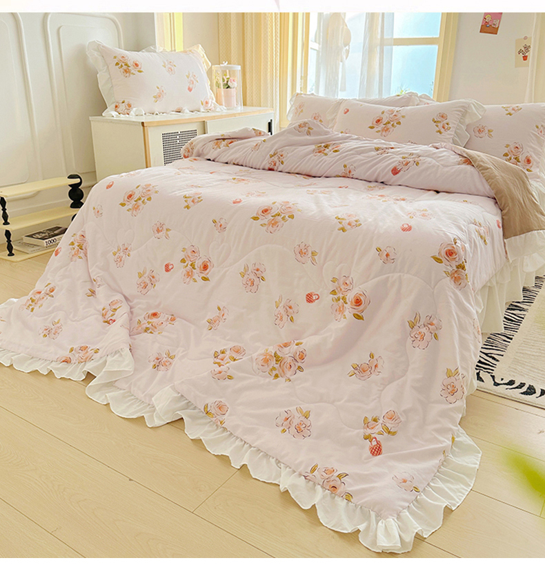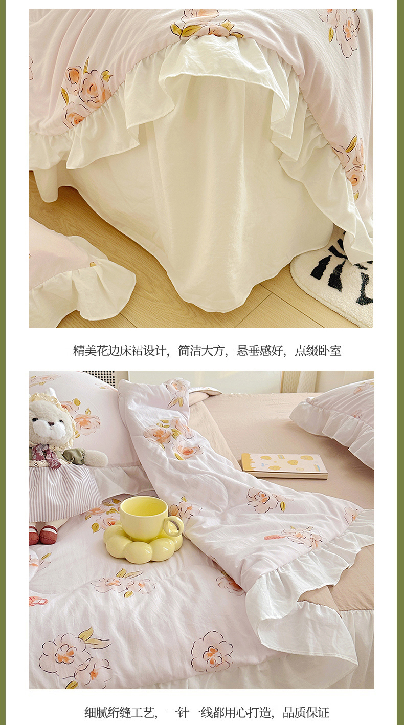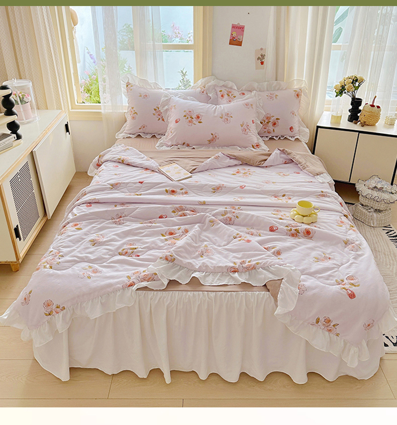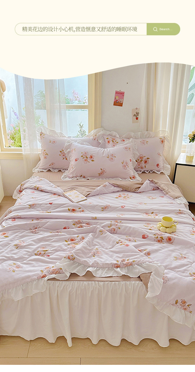• 91家纺网 家纺一手货源 找家纺 家贝爱 2025新款泡泡纱水洗棉花边床单/床裙款夏被四件套夏凉被 瑶香私语