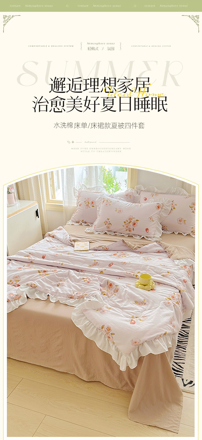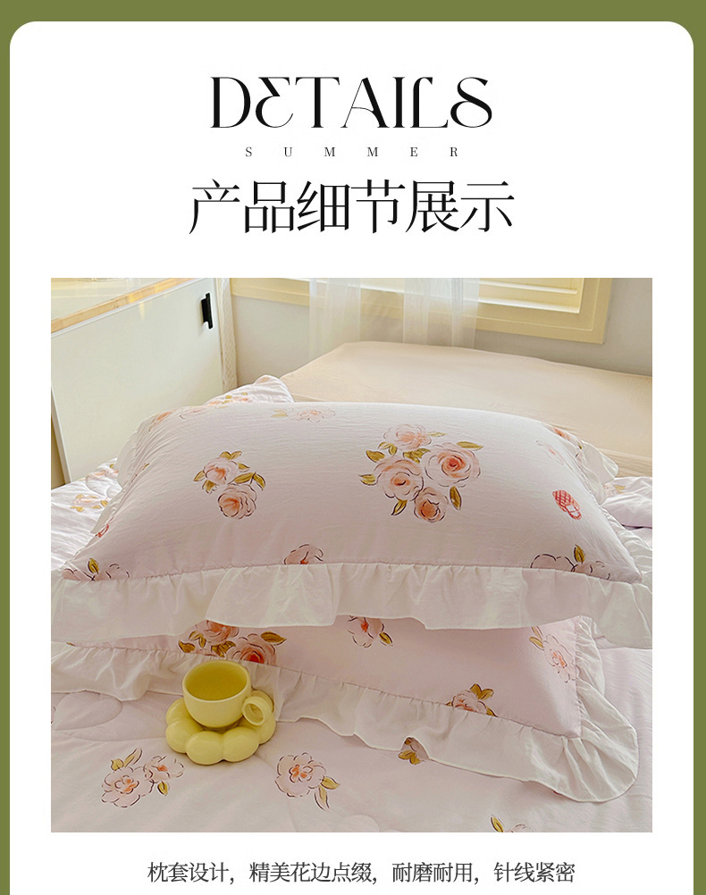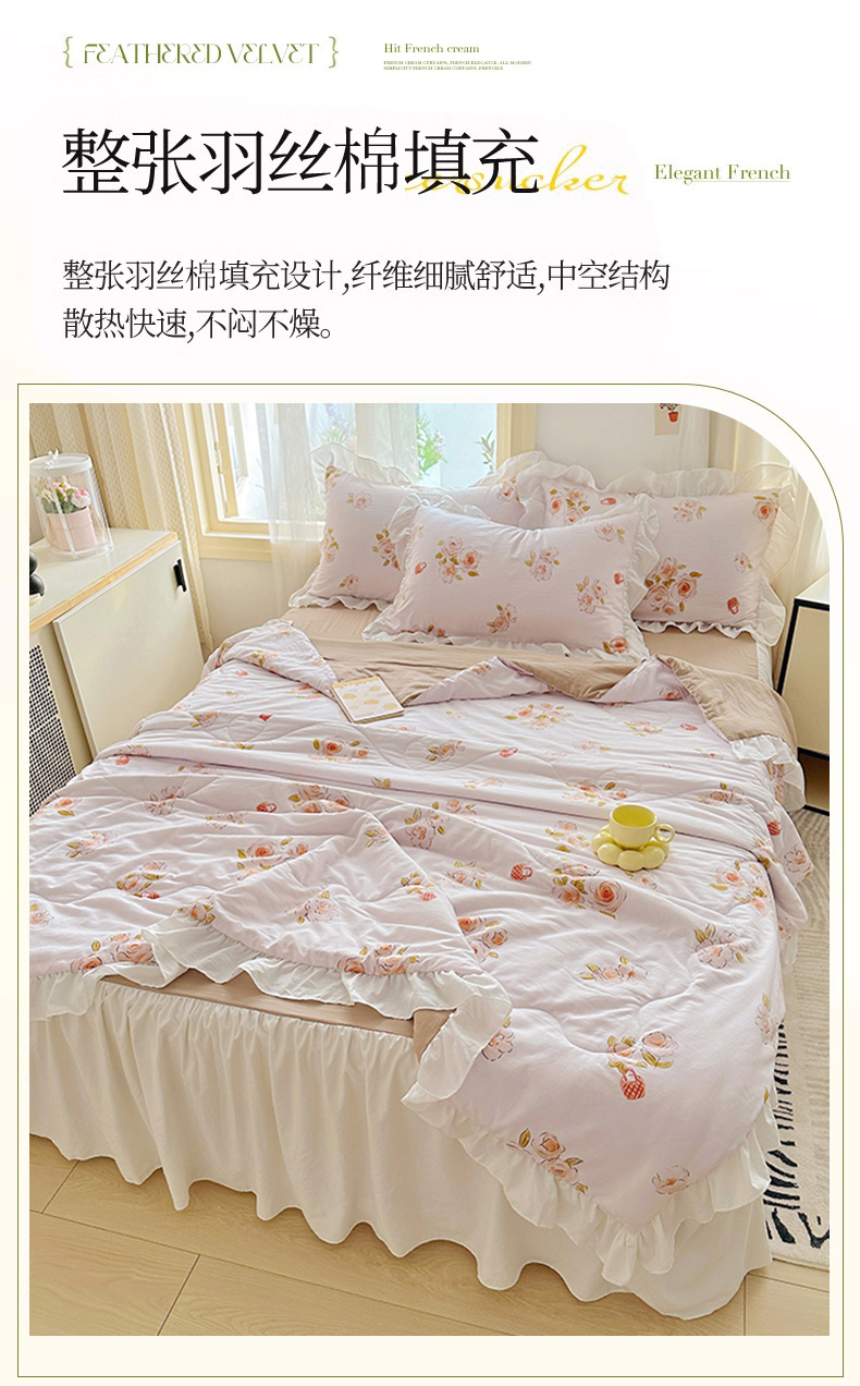 • 91家纺网 家纺一手货源 找家纺 家贝爱 2025新款泡泡纱水洗棉花边床单/床裙款夏被四件套夏凉被 瑶香私语
