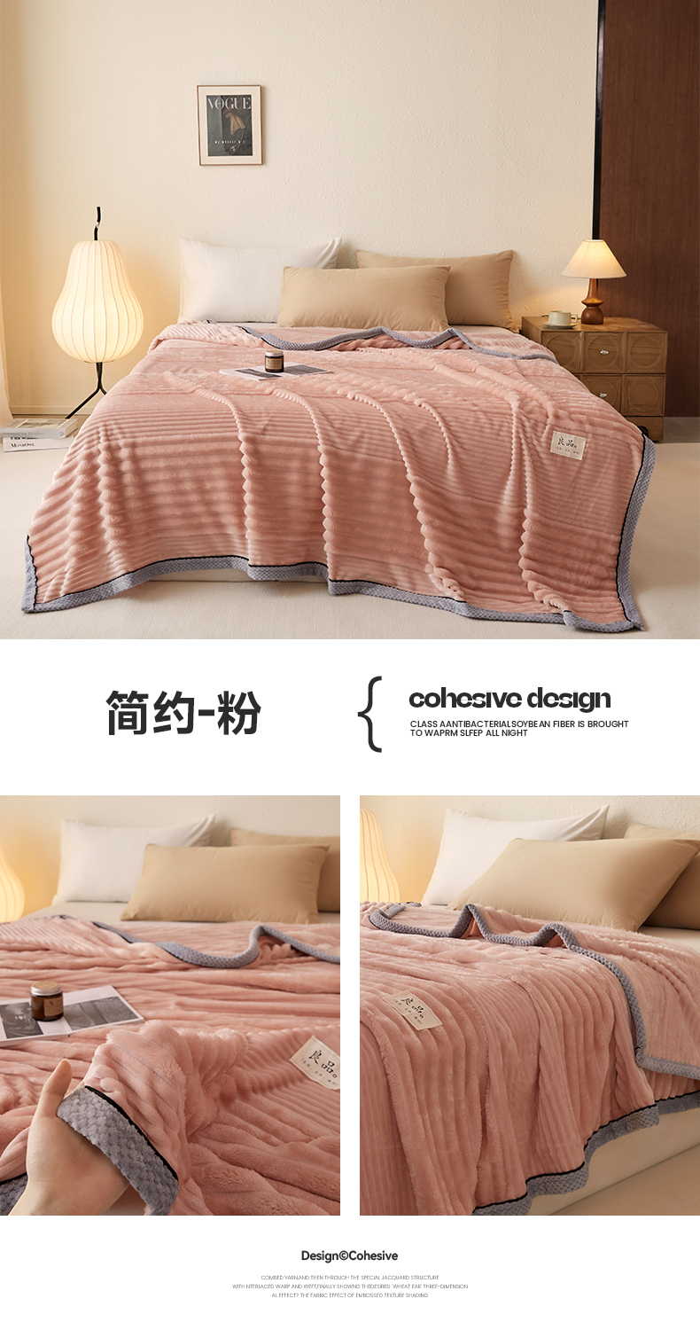 商品名称:澳梵家居 2025新款魔法绒糯糯绒提花抽条毛毯盖毯 简约-黛蓝