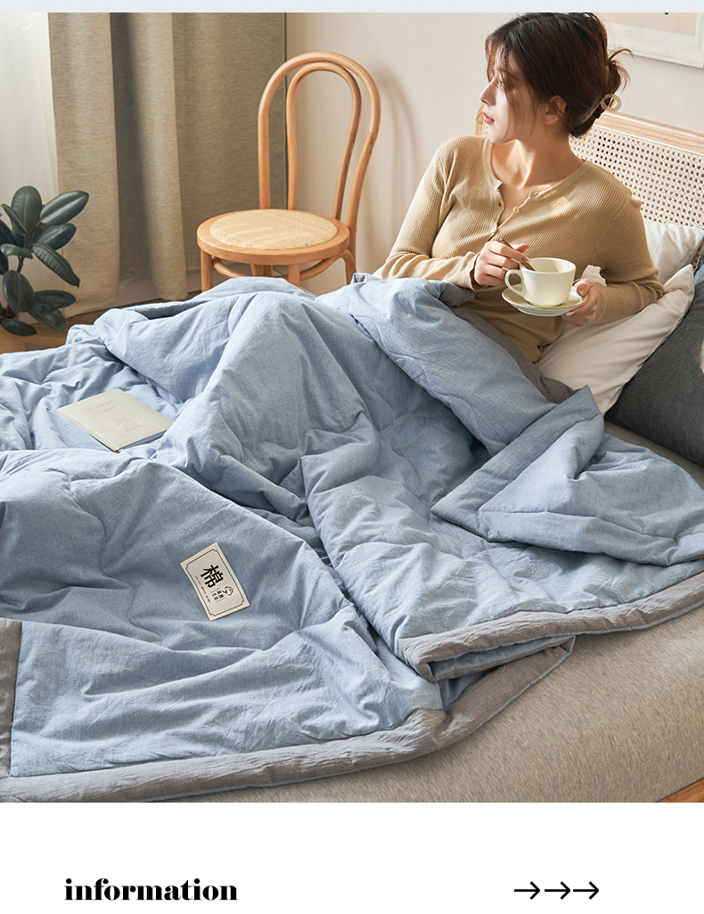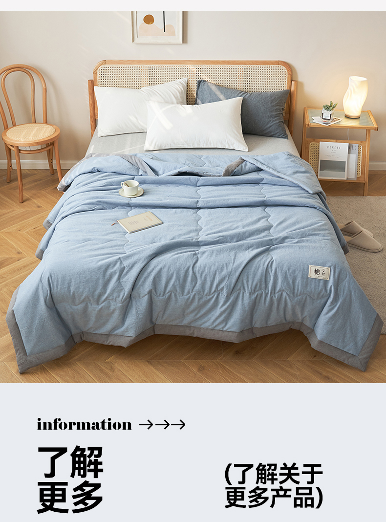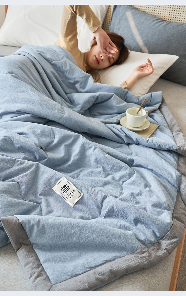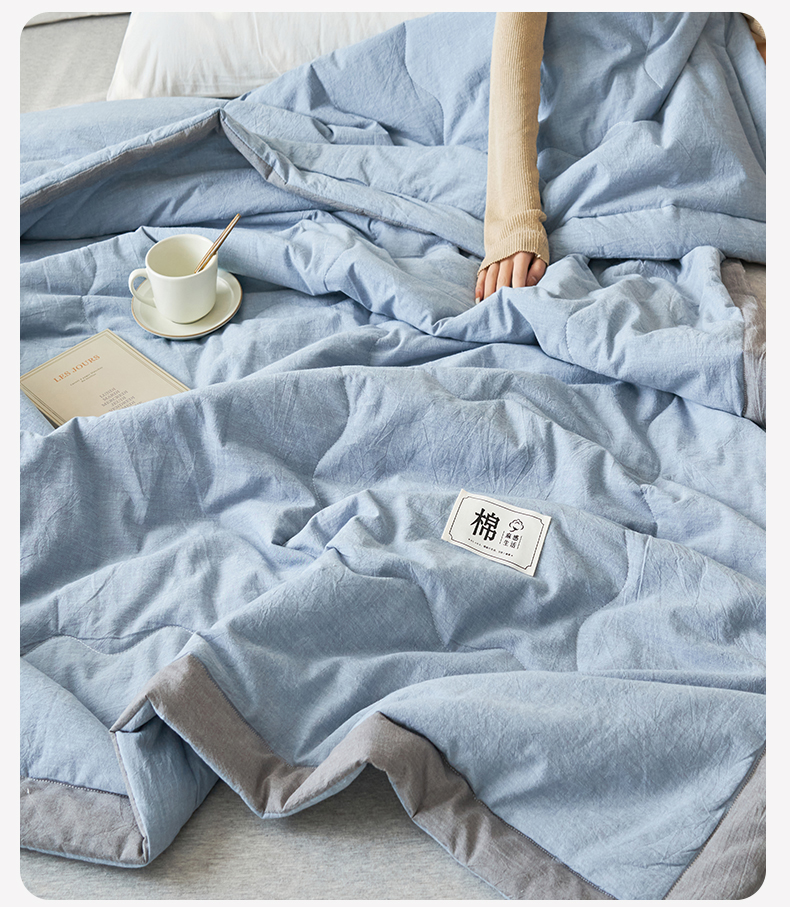 商品名称:金鹰 2025新款A类纯棉水洗棉色织棉花夏被全棉空调被夏凉被 清雅蓝