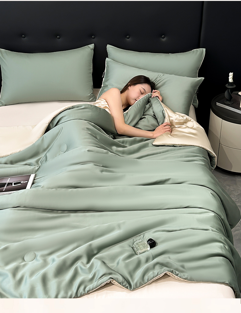 (总)金鹰 2025新款A类莱赛尔50天丝拼色空调被大豆夏被四件套