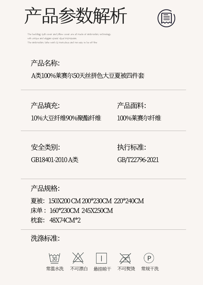 商品名称:(总)金鹰 2025新款A类莱赛尔50天丝拼色空调被大豆夏被四件套