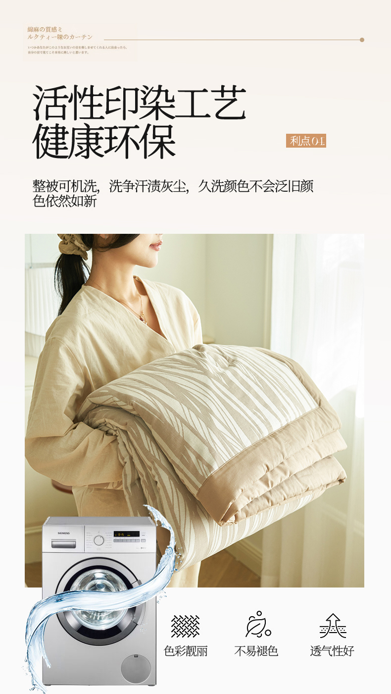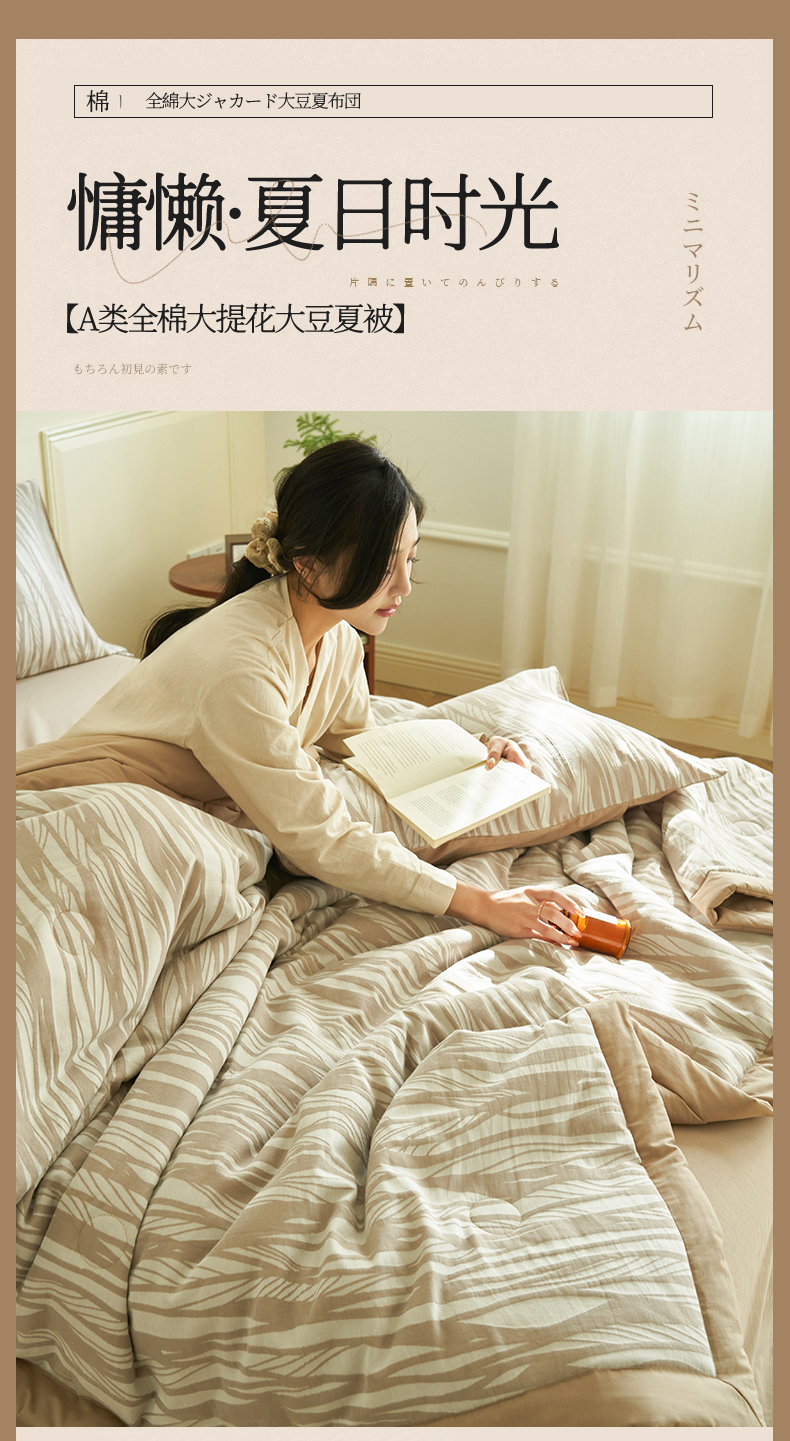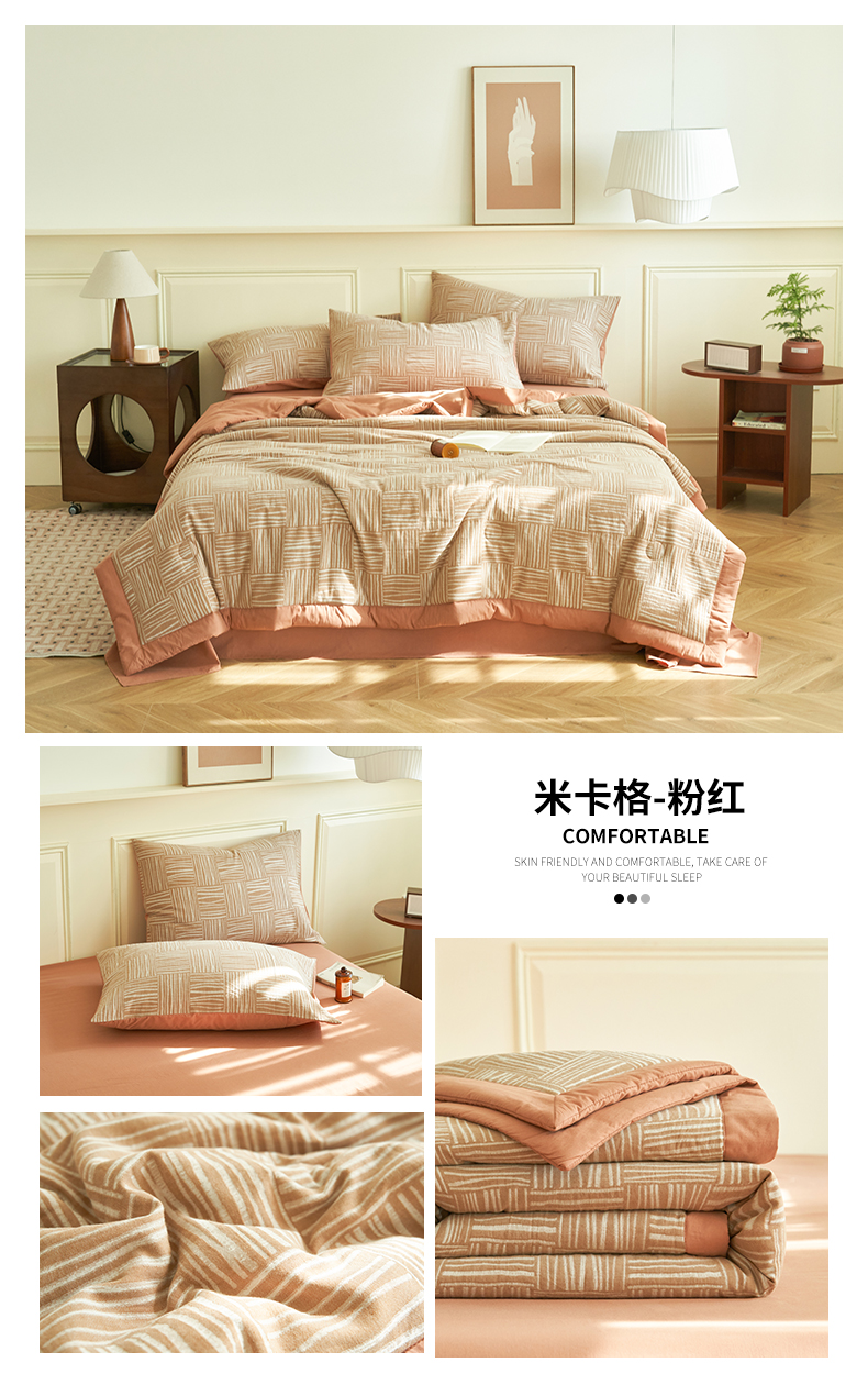当前位置: 91家纺网 > 商品网购 > 床品套件 > 四件套 > 全棉普通四件套 > 金鹰 2025新款A类纯棉提花水洗棉全棉空调被大豆夏被四件套 条纹-浅咖