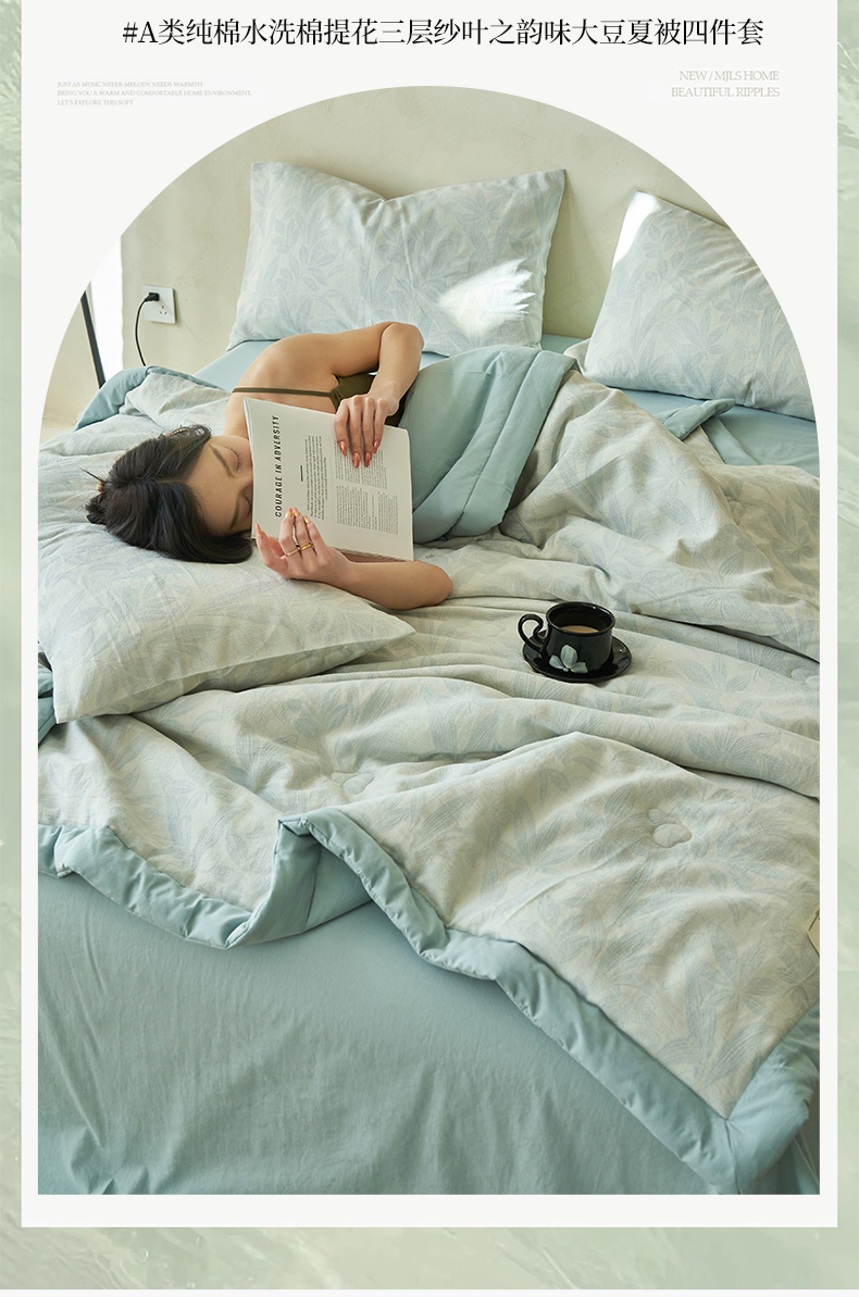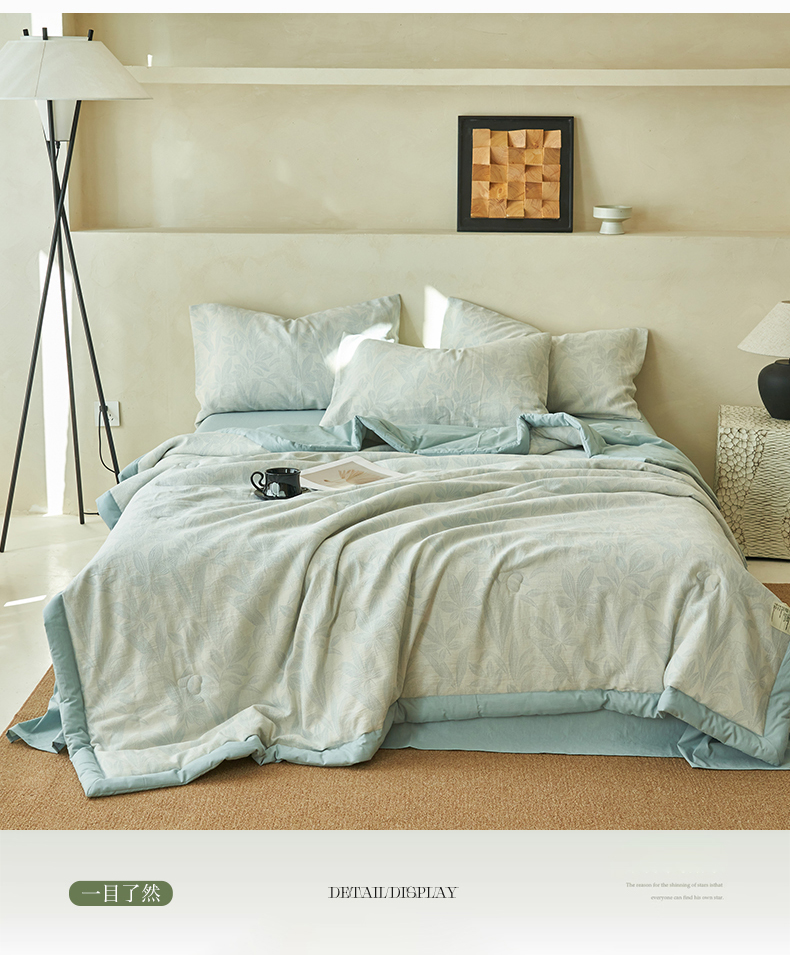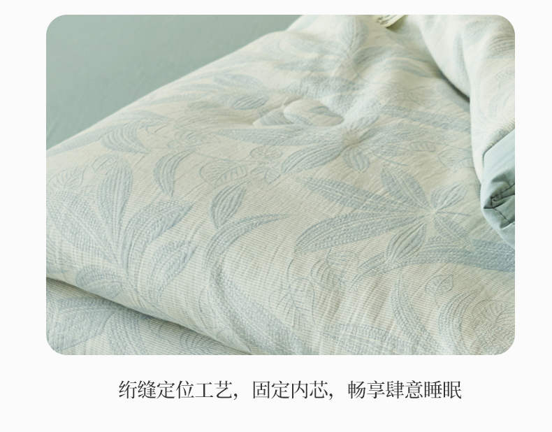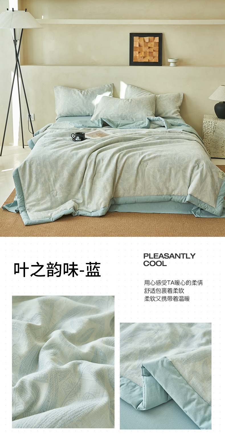 当前位置: 91家纺网 > 商品网购 > 床品套件 > 四件套 > 夏被四件套 > 金鹰 2025新款A类纯棉水洗棉提花三层纱叶之韵味空调被夏凉被大豆夏被四件套 叶之韵味-蓝
