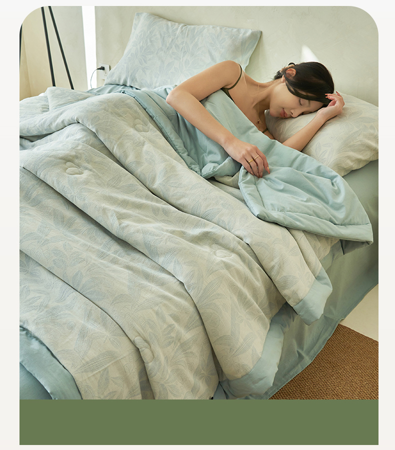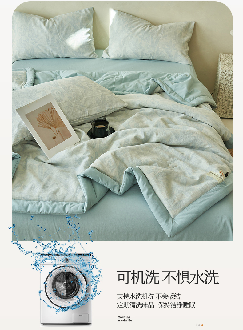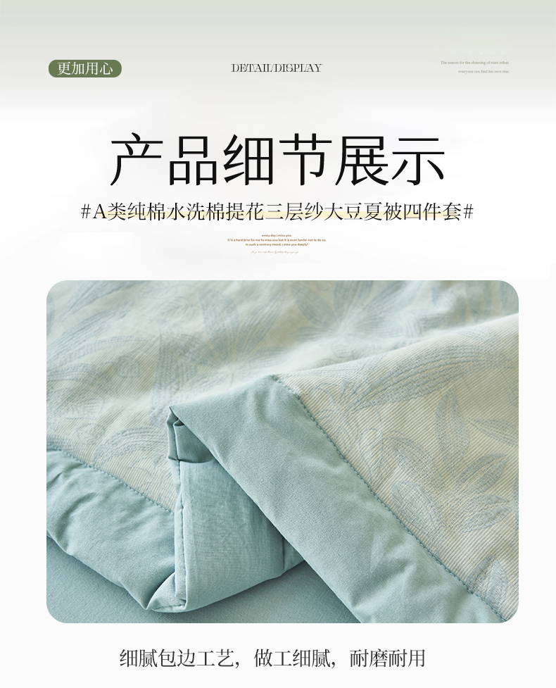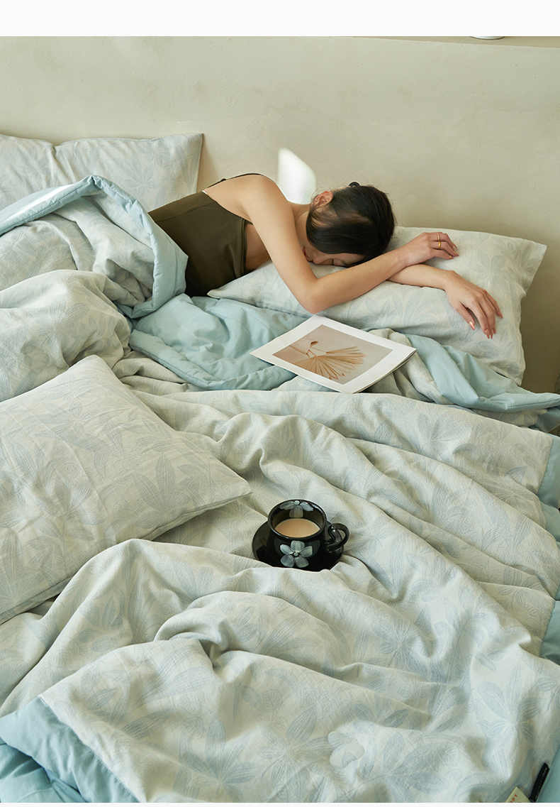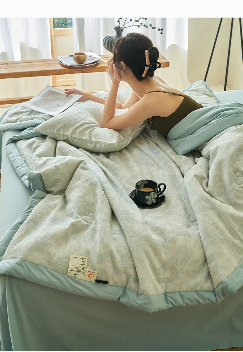 当前位置: 91家纺网 > 商品网购 > 床品套件 > 四件套 > 夏被四件套 > 金鹰 2025新款A类纯棉水洗棉提花三层纱叶之韵味空调被夏凉被大豆夏被四件套 叶之韵味-蓝