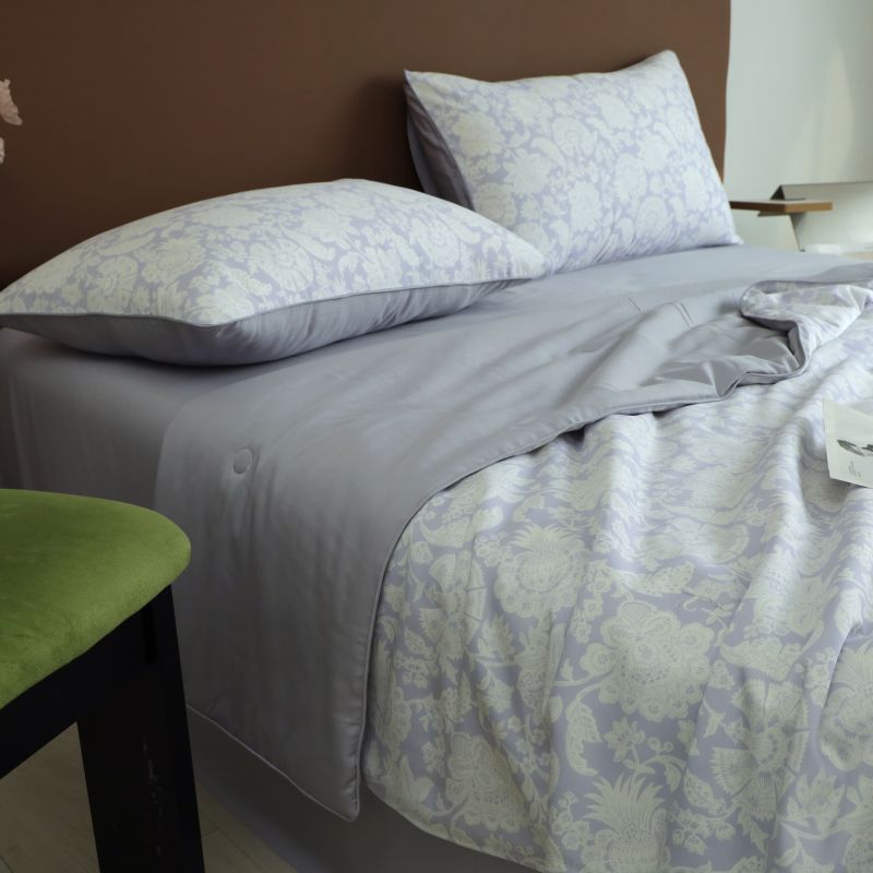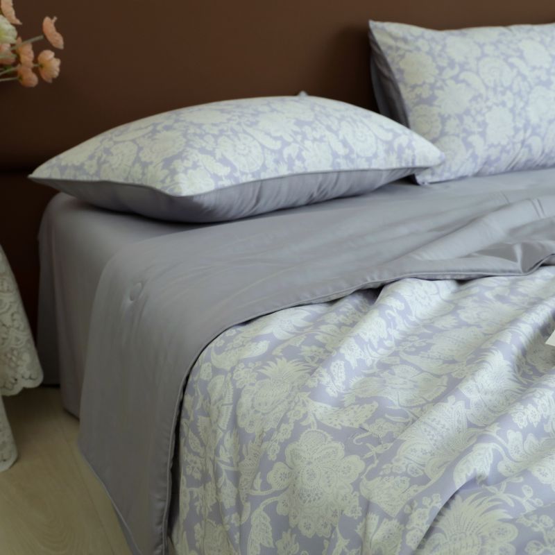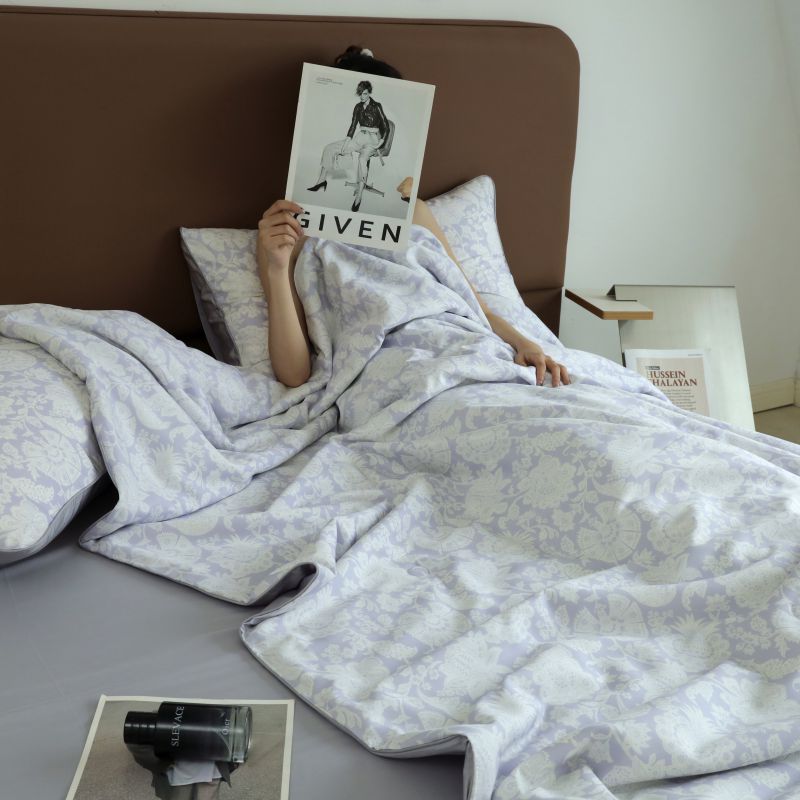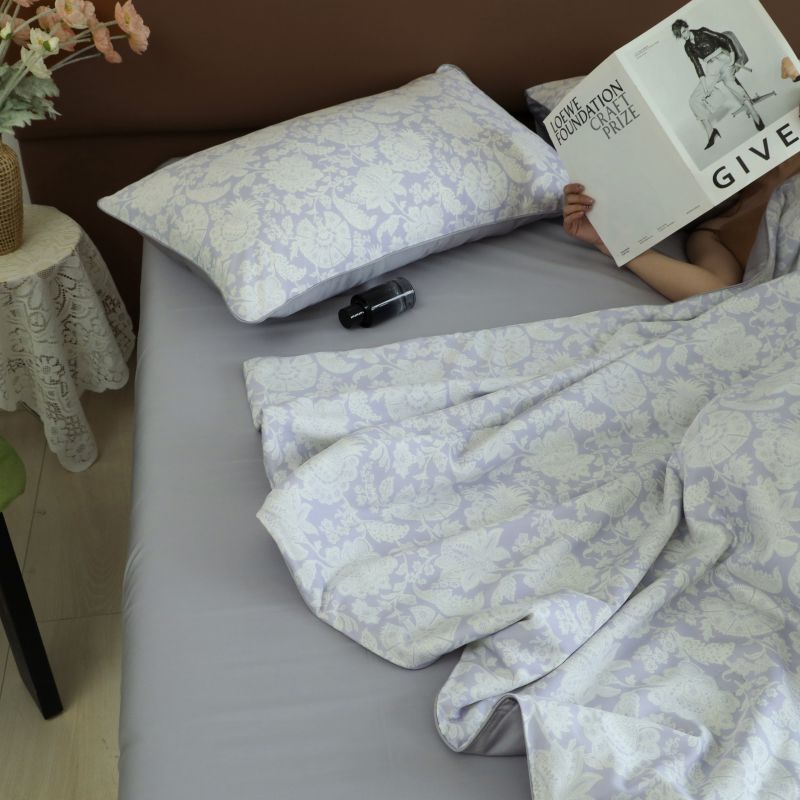 商品名称:朵美 2025新款50支天丝印花夏被+夏被四件套 浅妆