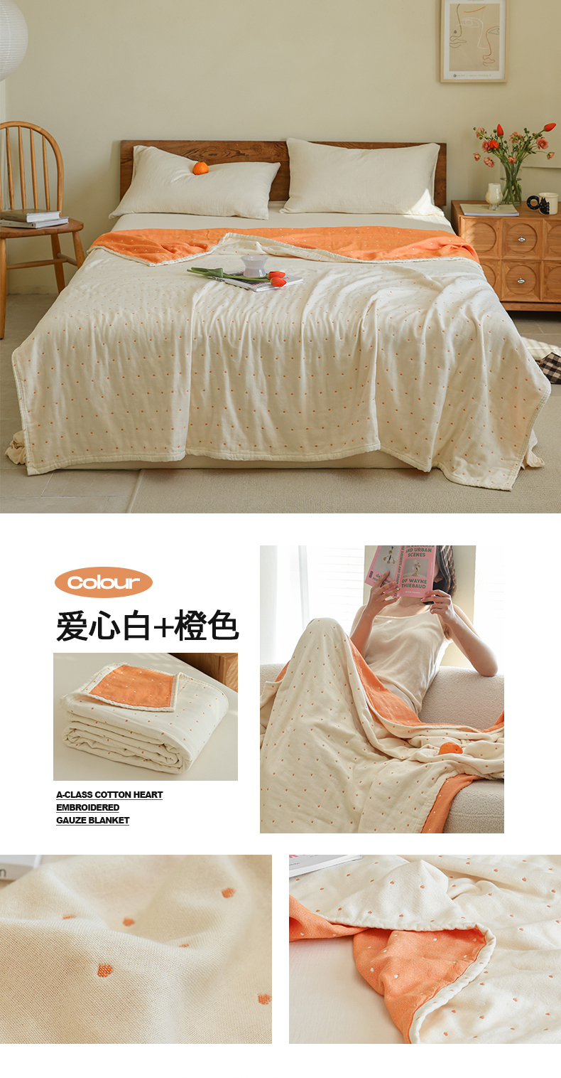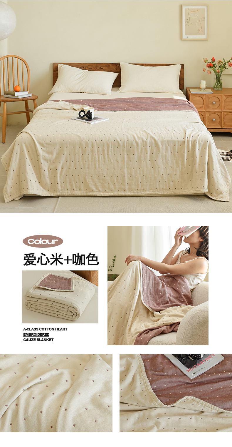 商品名称:雯雨2025新款A类全棉四层爱心刺绣纱布毛巾被 组合图