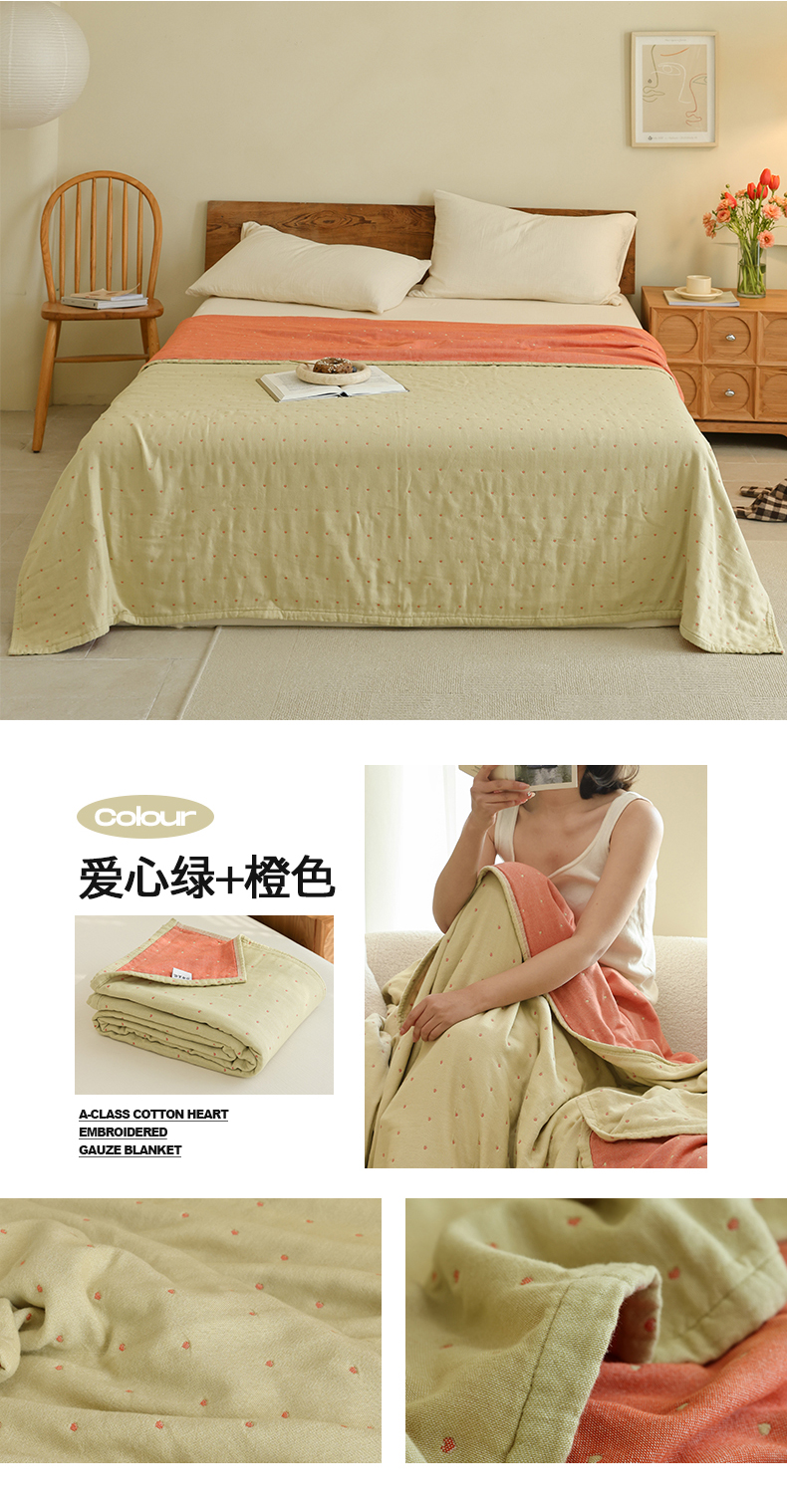 雯雨2025新款A类全棉四层爱心刺绣纱布毛巾被 组合图