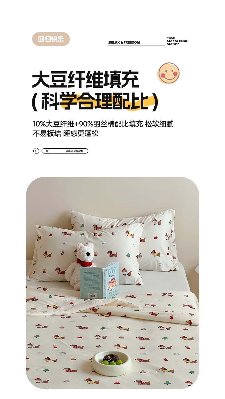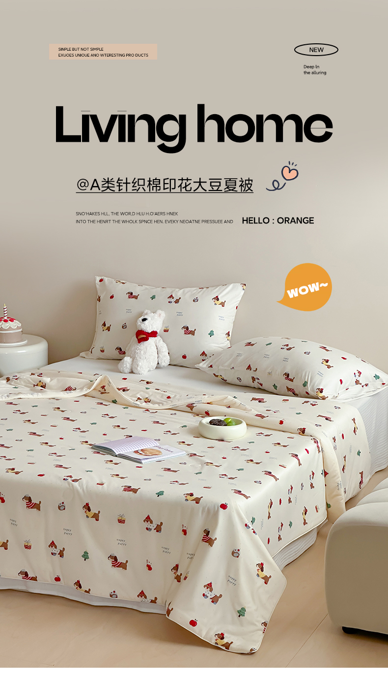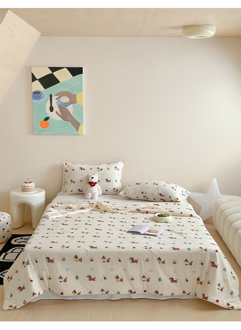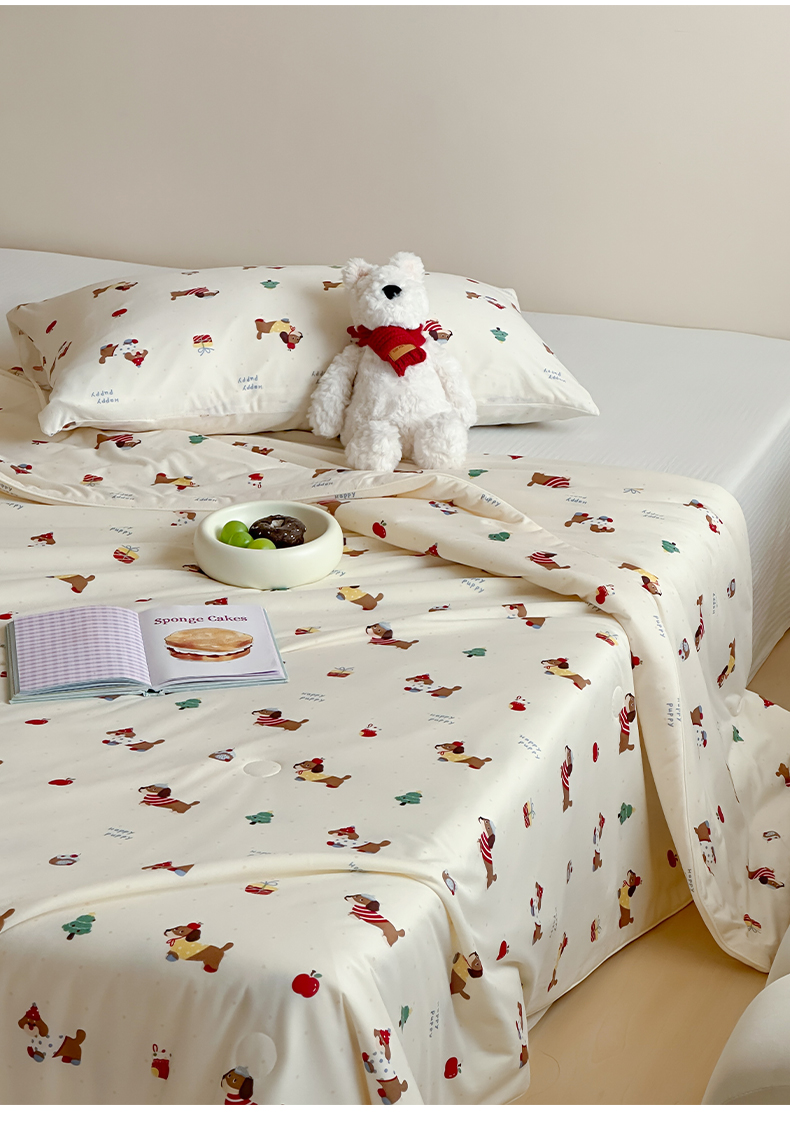商品名称:一加一 2025A类牛奶丝针织棉印花大豆夏被 腊肠狗