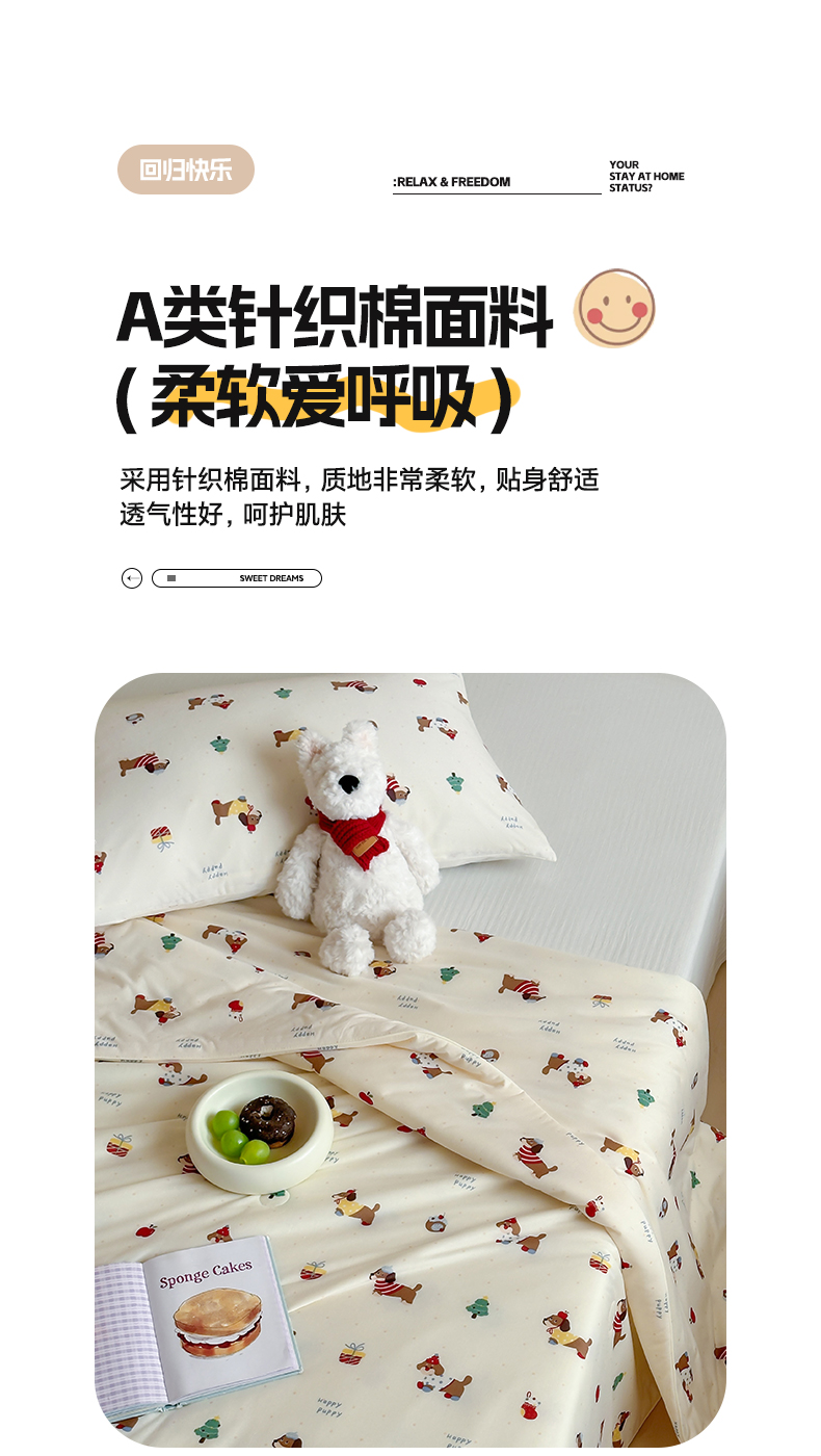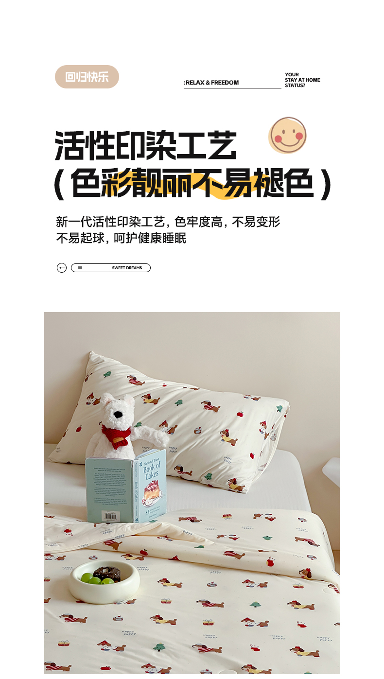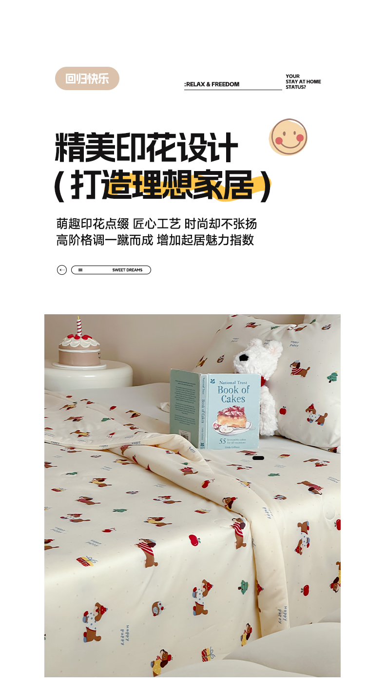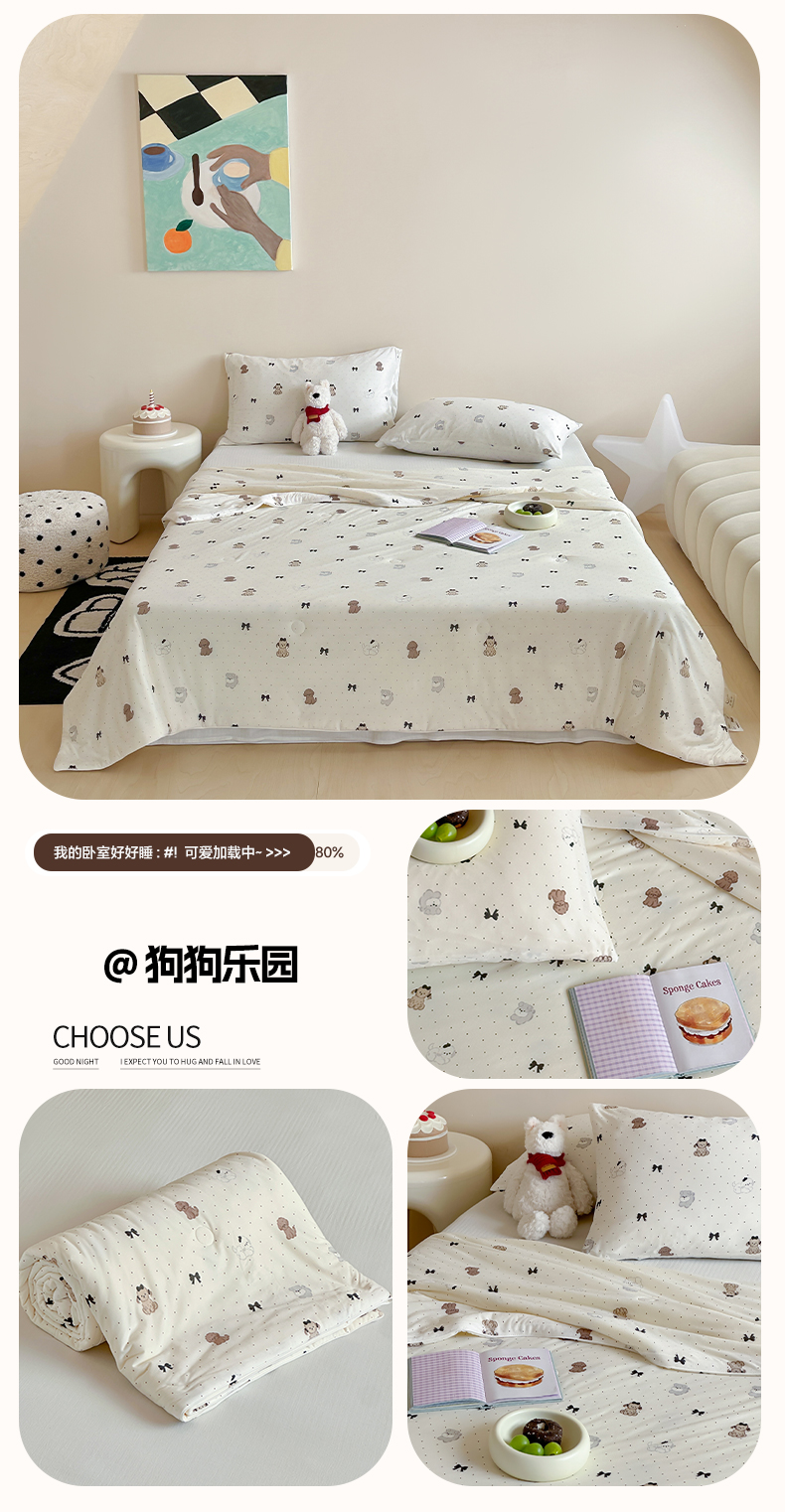 商品名称:一加一 2025A类牛奶丝针织棉印花大豆夏被 腊肠狗