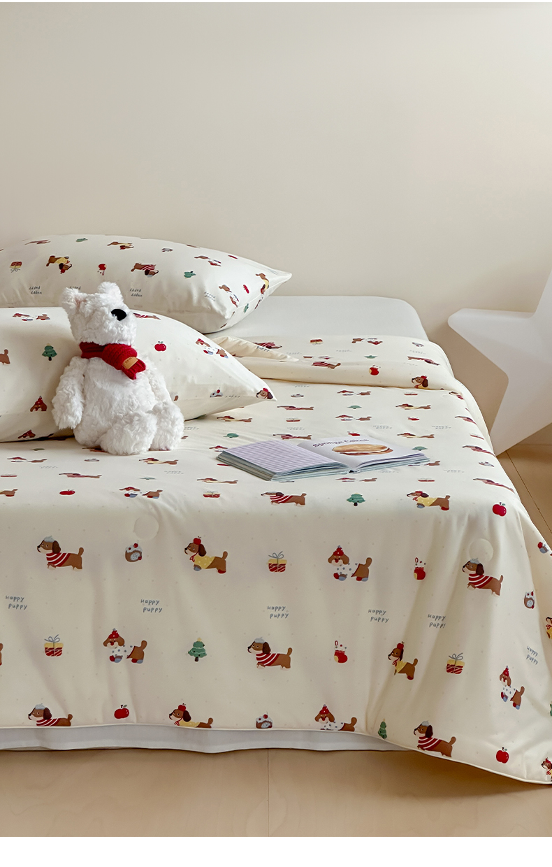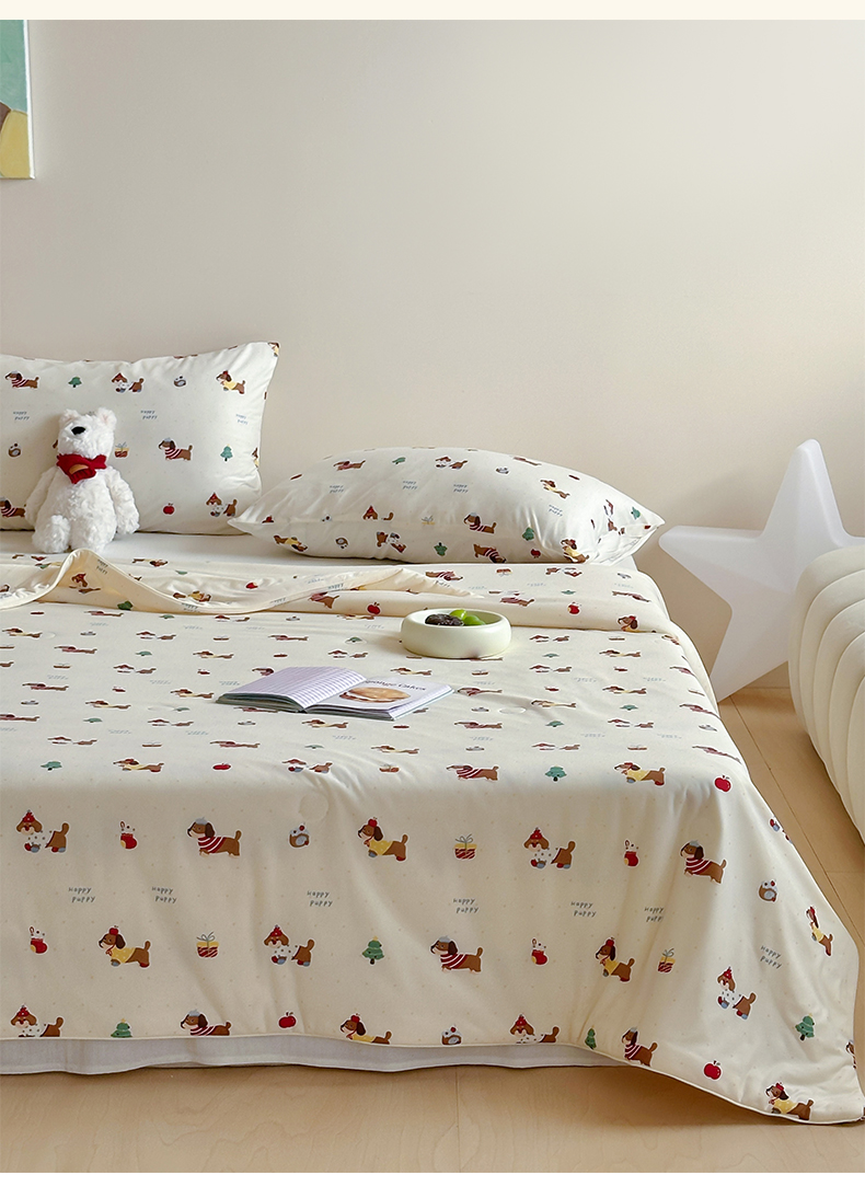 一加一 2025A类牛奶丝针织棉印花大豆夏被 腊肠狗
