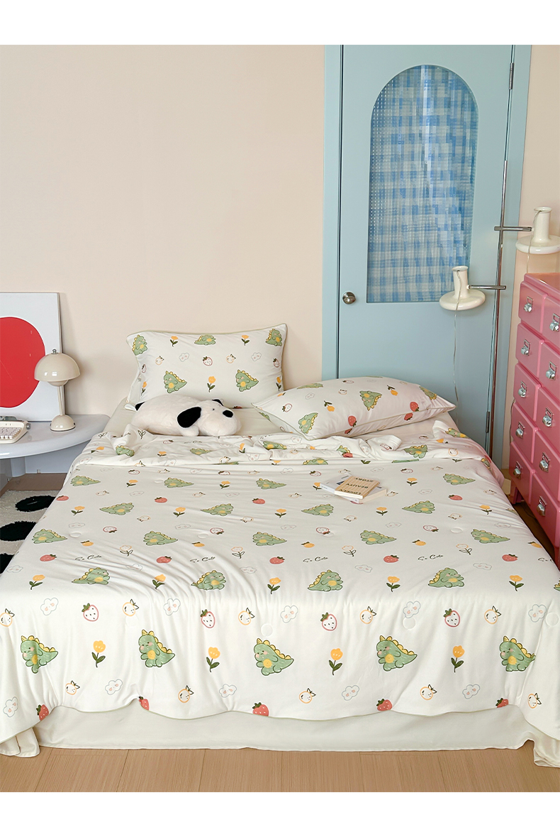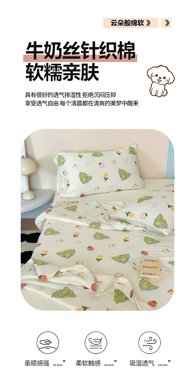 商品名称:一加一 2025A类牛奶丝针织棉印花大豆夏被 草莓小恐龙