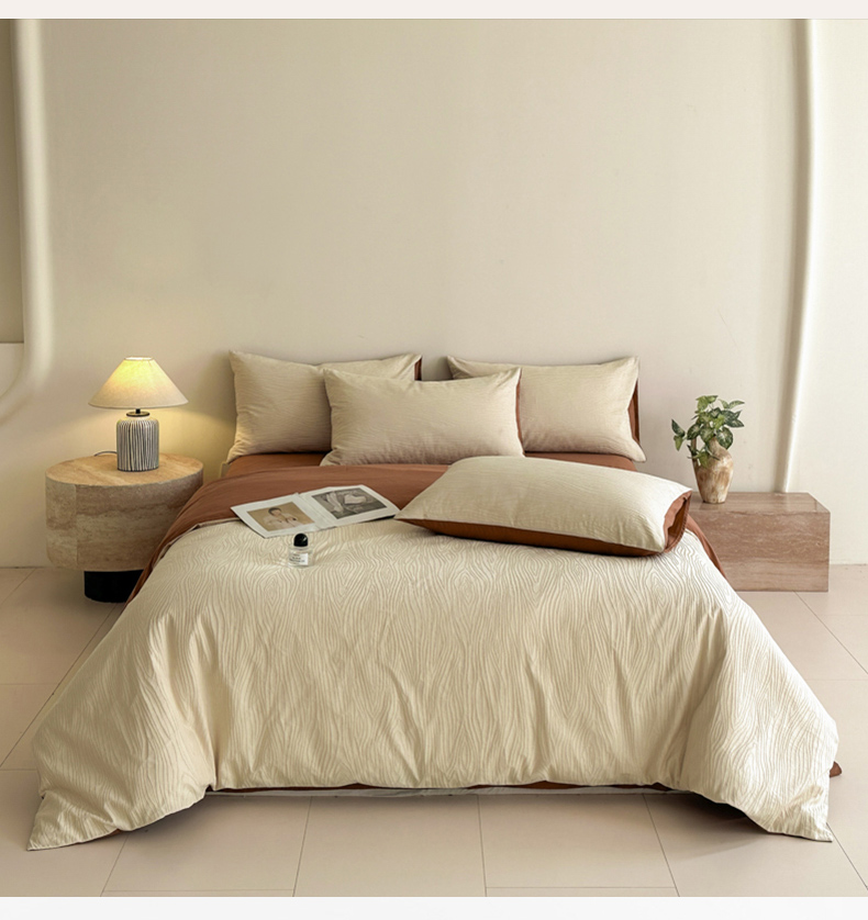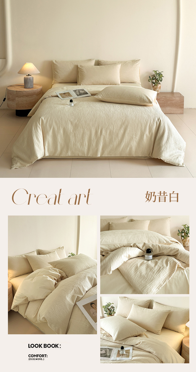 当前位置: 91家纺网 > 商品网购 > 床品套件 > 四件套 > 提花四件套 > 欣晴家纺 2025新款亲肤水洗棉简约大提花四件套 奶昔白+焦糖