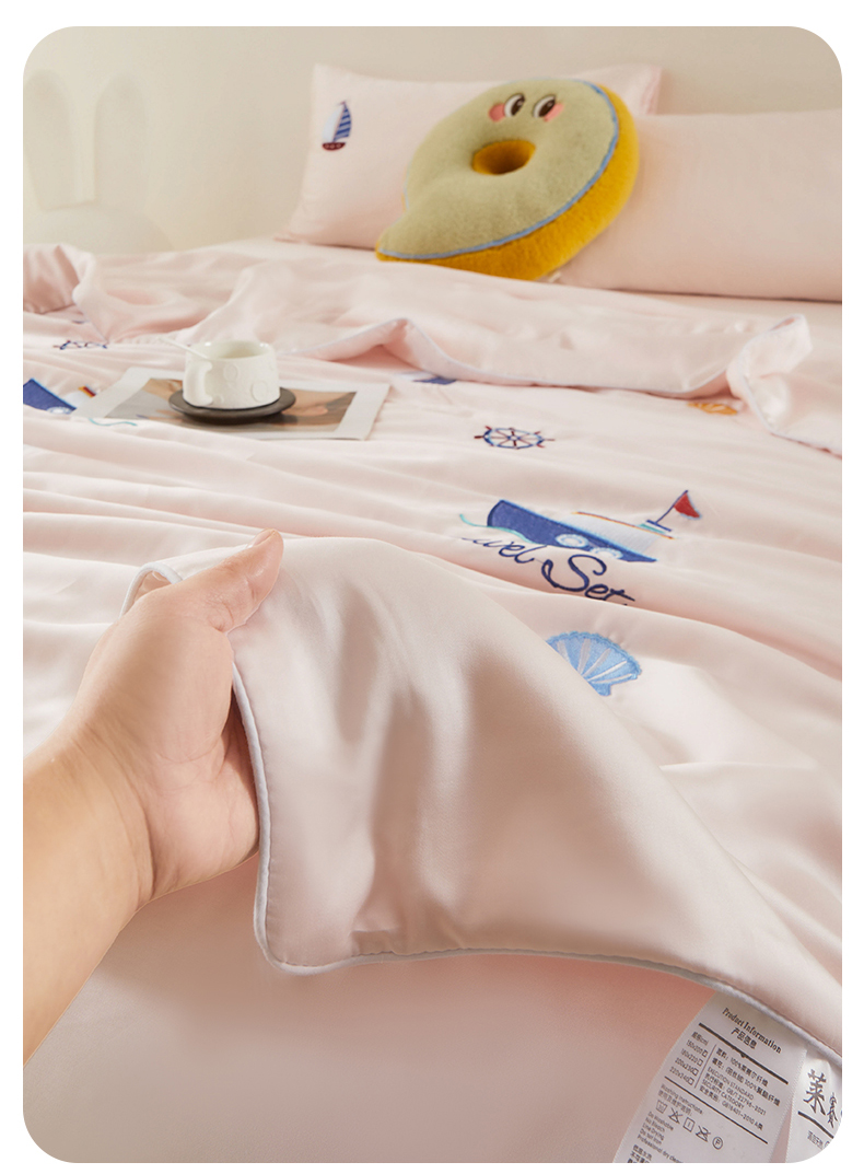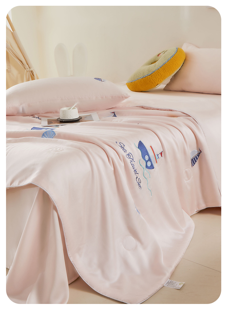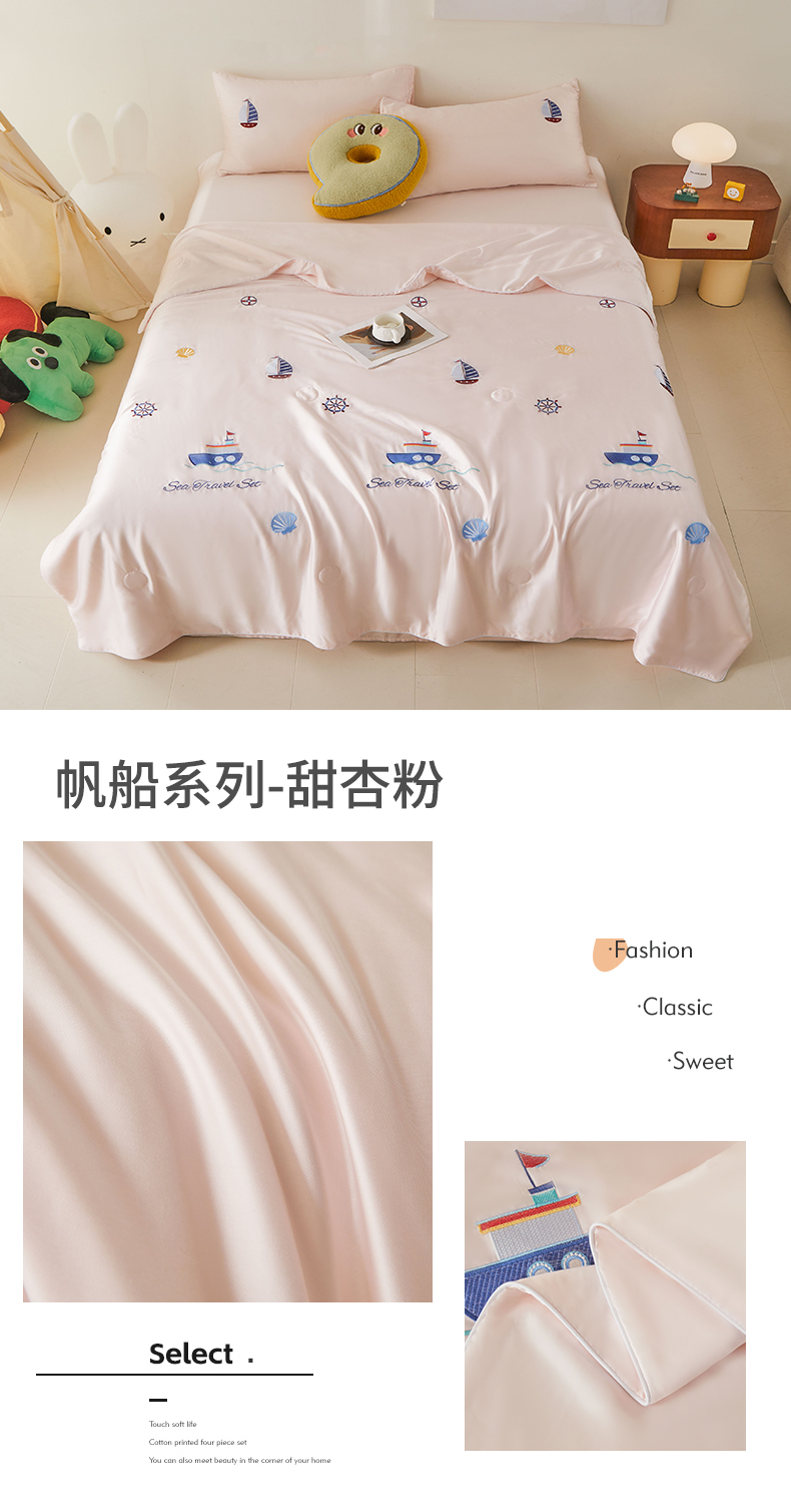 当前位置: 91家纺网 > 商品网购 > 床品套件 > 四件套 > 夏被四件套 > 雯豆家纺 2025夏季新品7A抗菌莱赛尔兰精天丝绣花刺绣夏被空调被四件套凉感被芯 帆船系列-甜杏粉