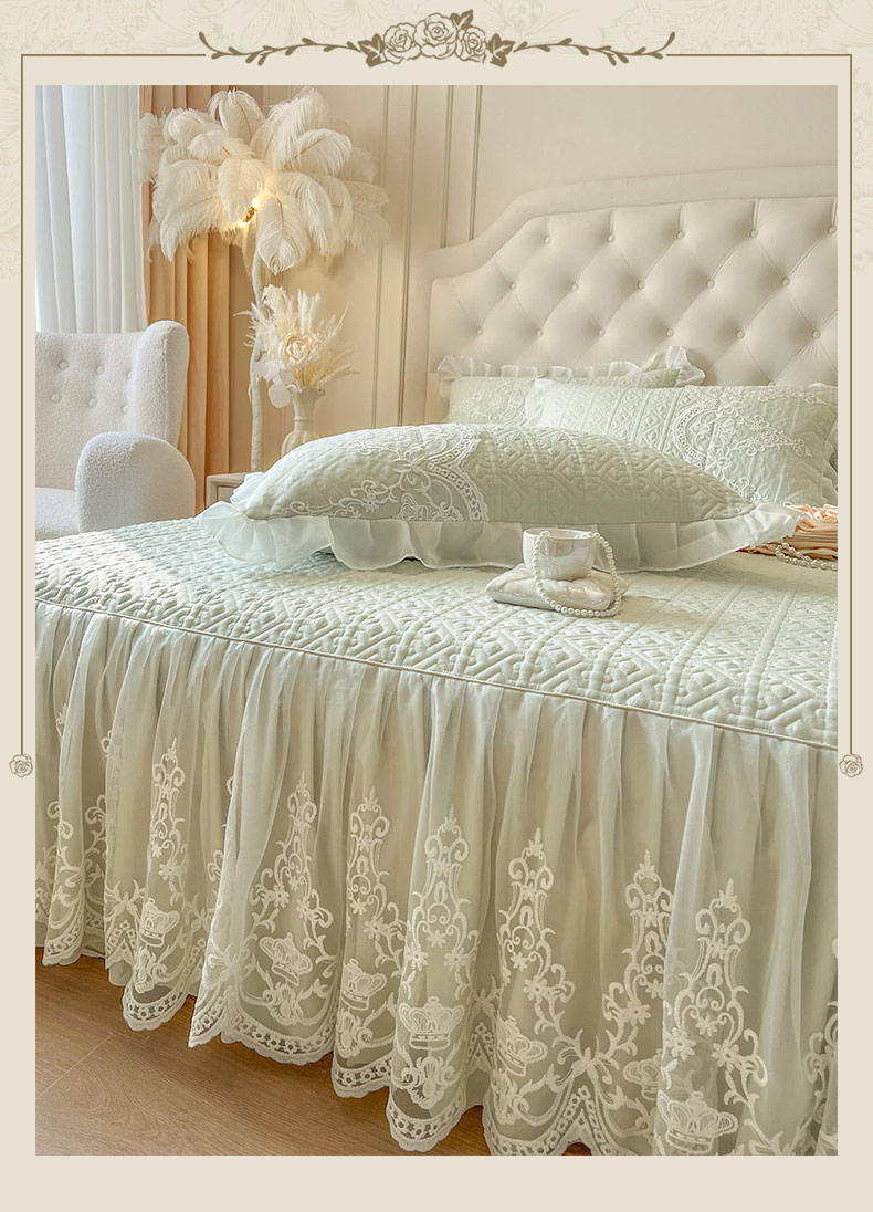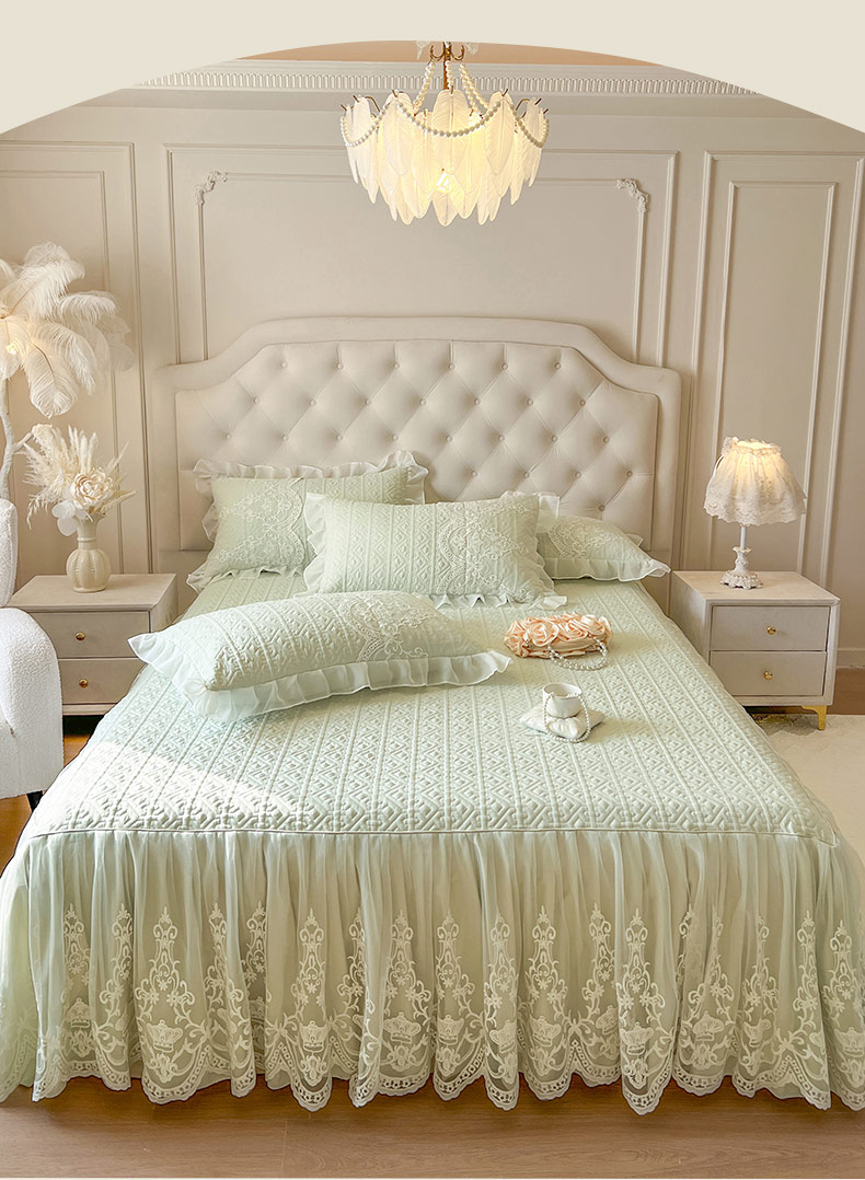 恋尚 2025新款木凉淳浪漫蕾丝床裙三件套-米朵 米朵-水绿