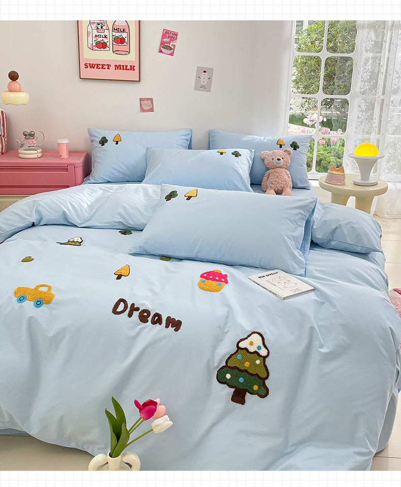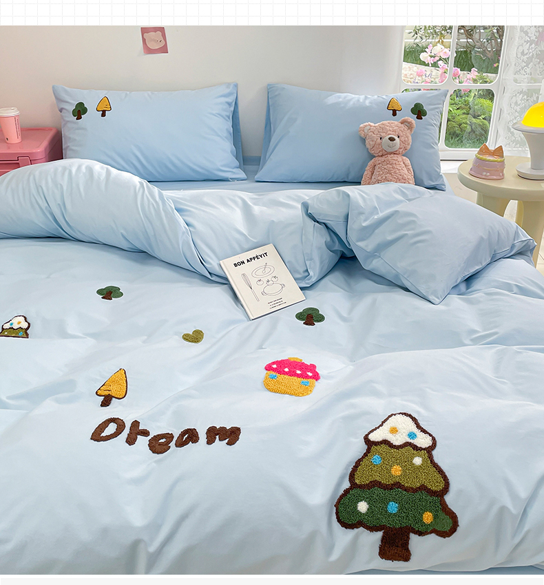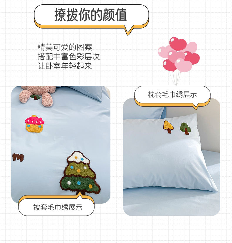 (总)(买家秀 热款花型 不断货)母婴级A类ins风水洗棉四件套水洗棉毛巾绣四件套水洗棉床笠四件套提花绣花,幸运小狗,开心熊猫,小红帽,小兔音乐会