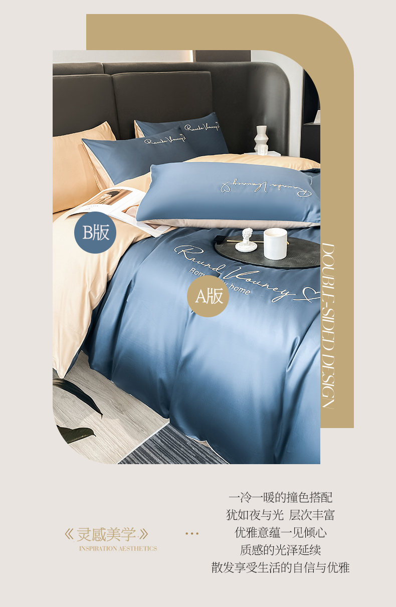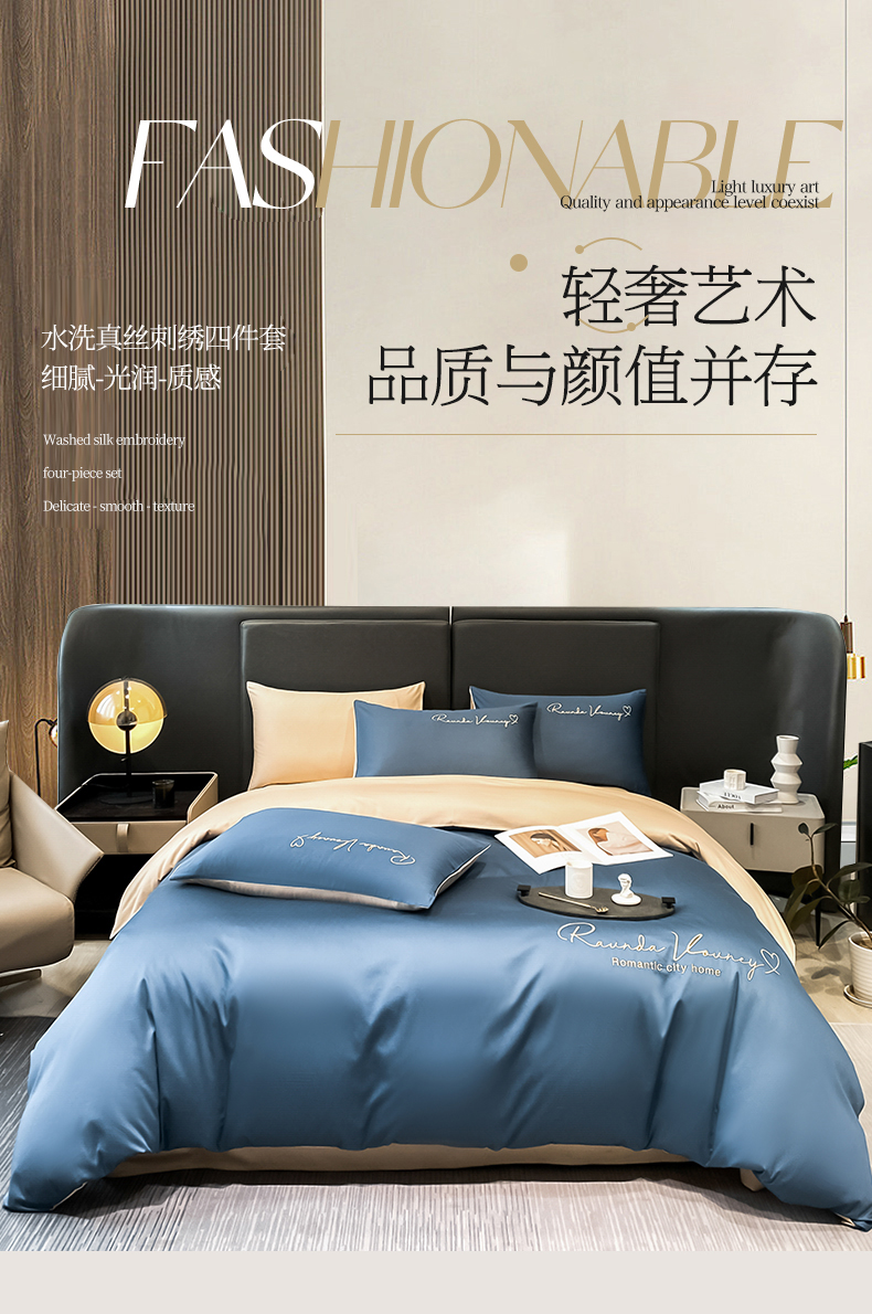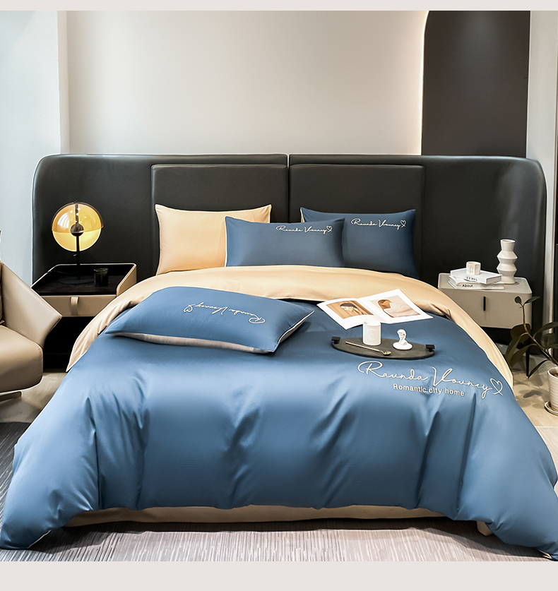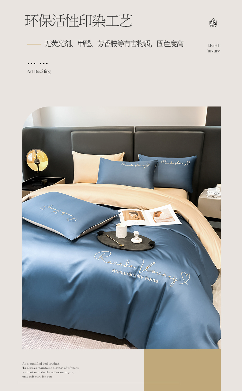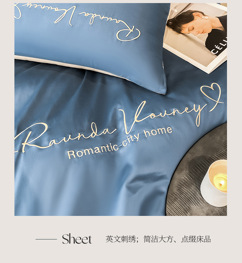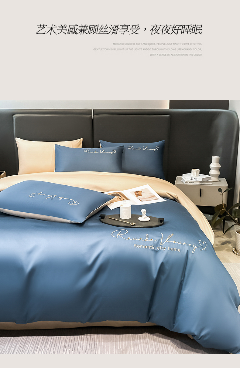 2025新款水洗磨毛刺绣四件套-慕斯 宾利蓝