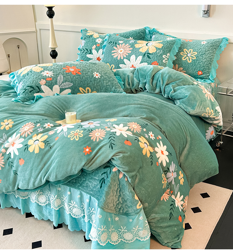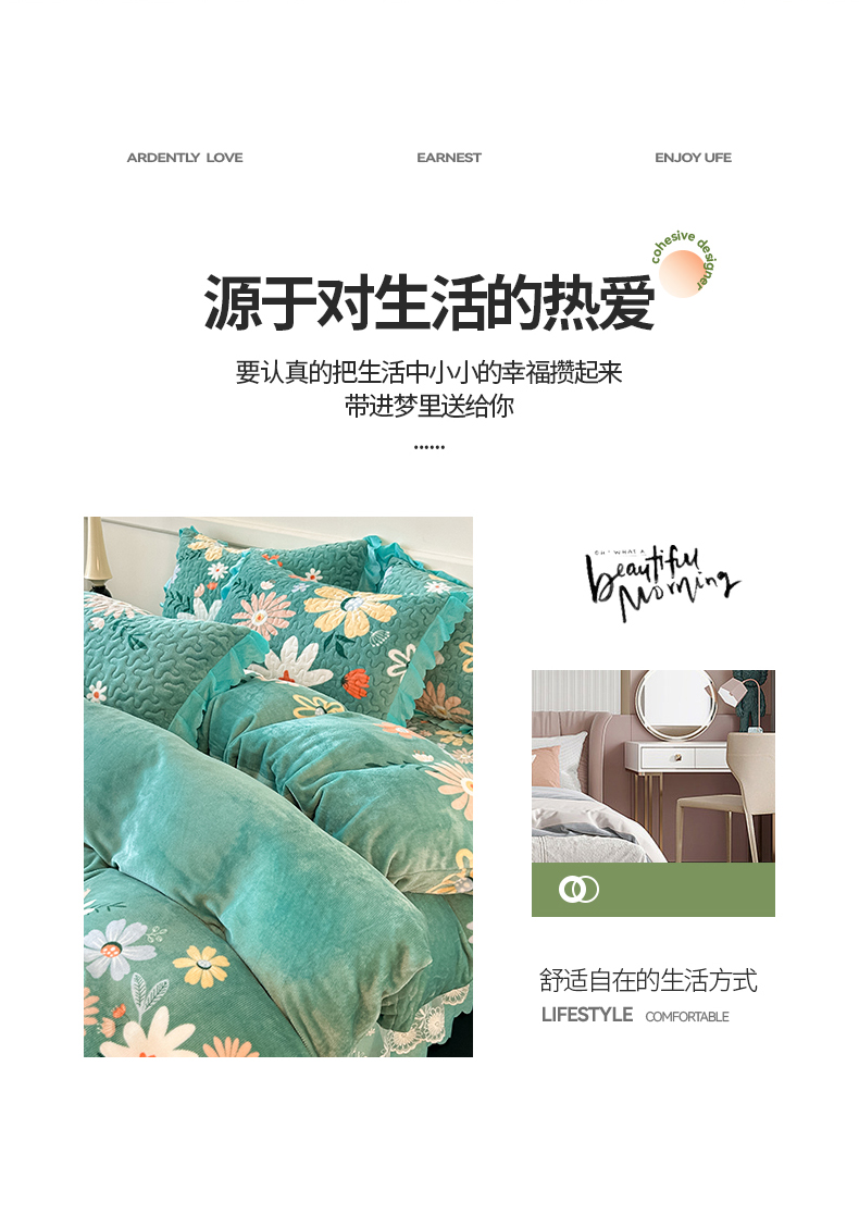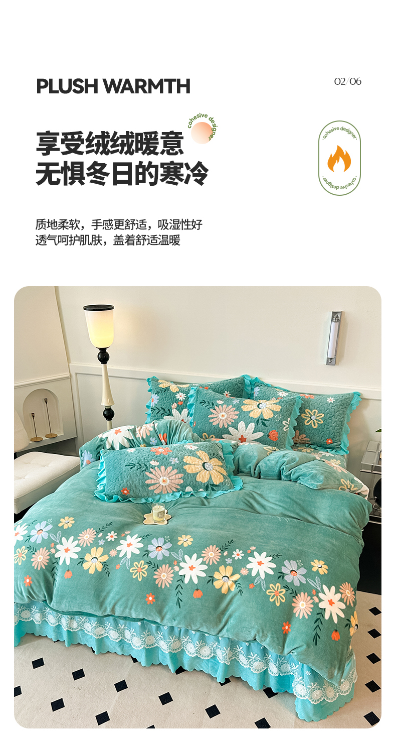 当前位置: 91家纺网 > 商品网购 > 床品套件 > 四件套 > 牛奶绒四件套 > 珍爱家纺 2025新款冬季加厚夹棉保暖牛奶绒蕾丝花边床盖床裙单件三件套双人四件套 幸运星灰