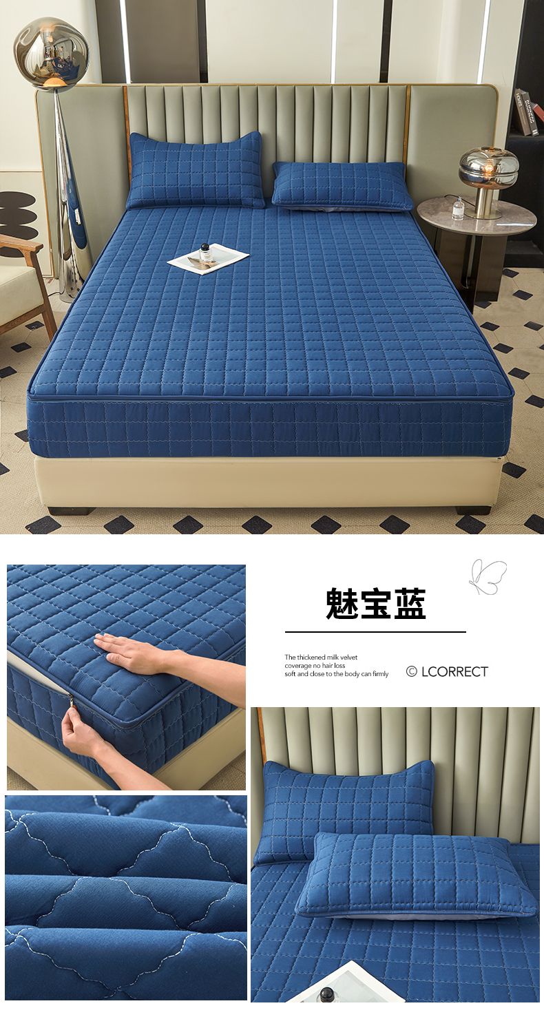 (总)欧邦 2025新款提花暖阳绒单床笠,苍穹蓝,初雪白,海棠粉,慕斯灰,青瓷绿,檀木咖