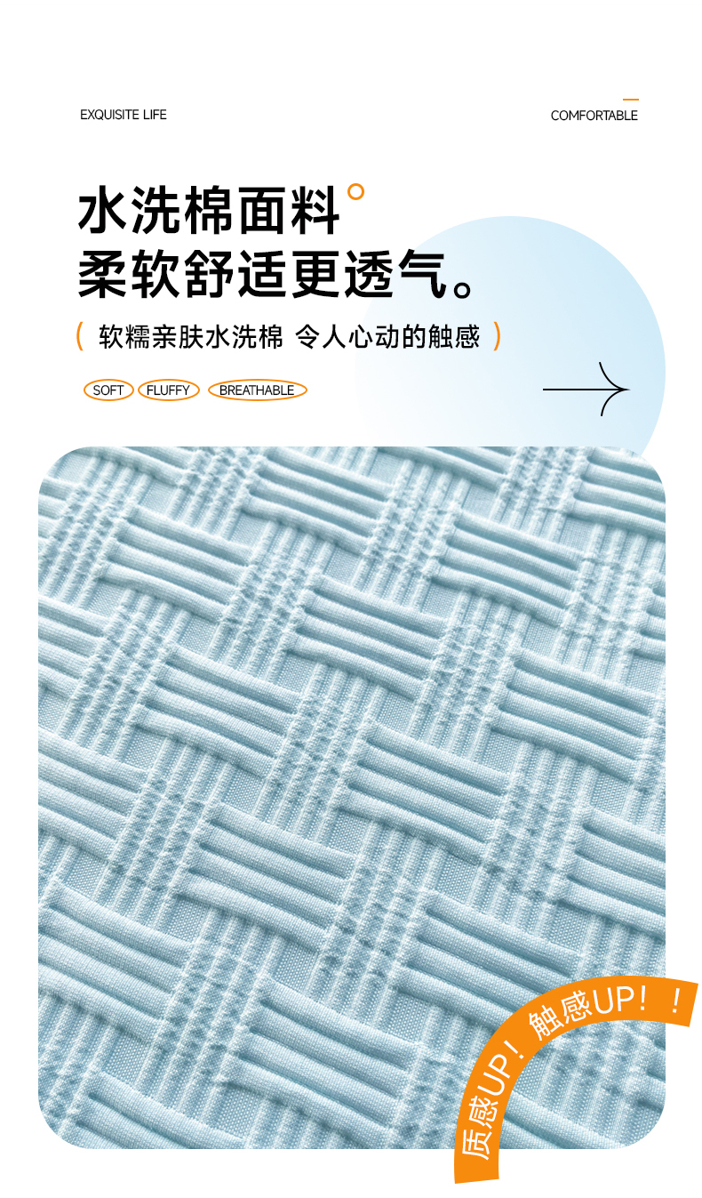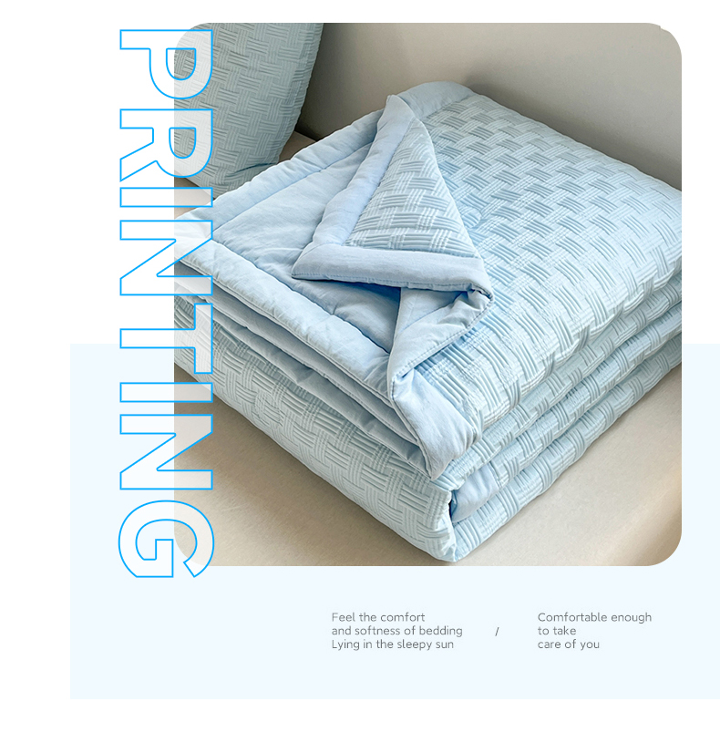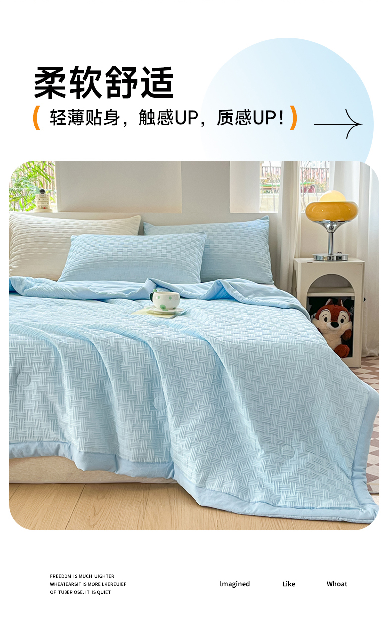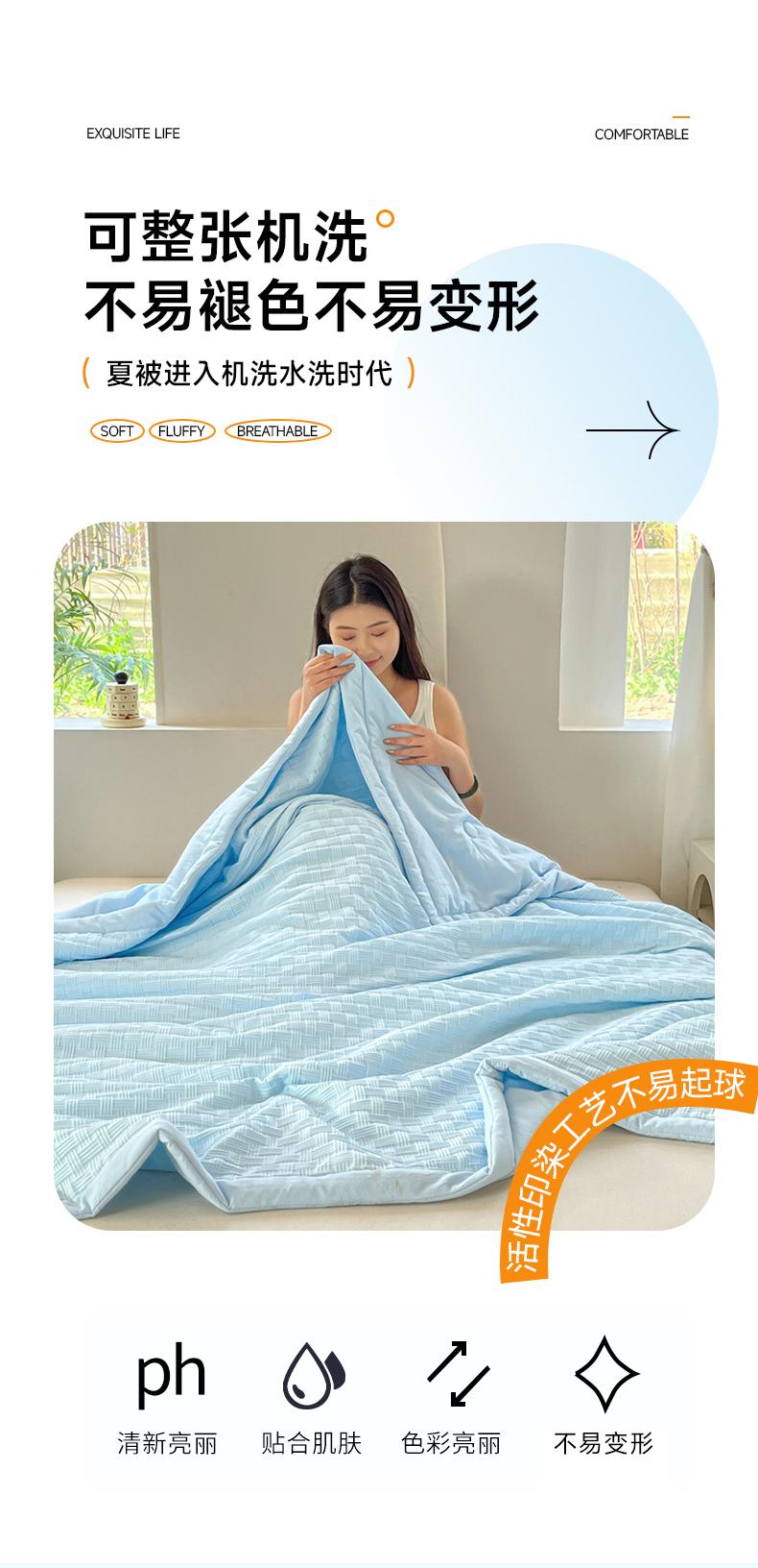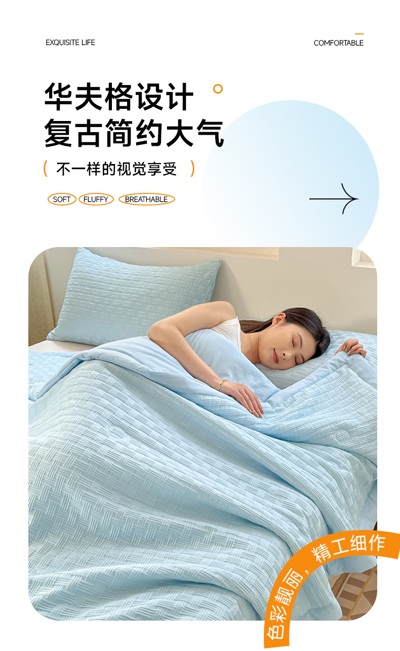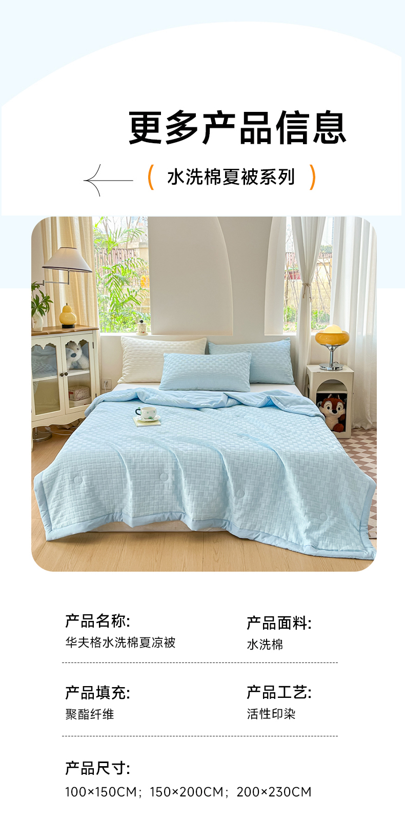 商品名称:欧邦 2025新款华夫格水洗棉夏被 天蓝