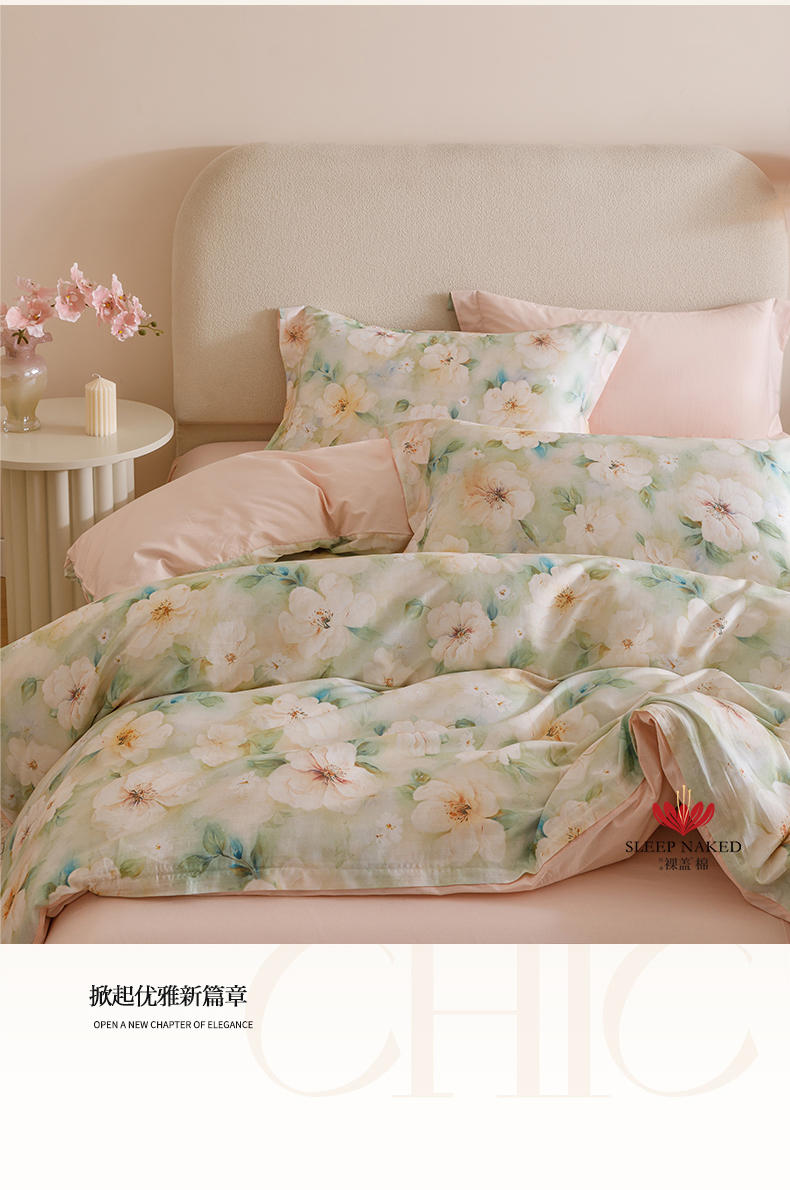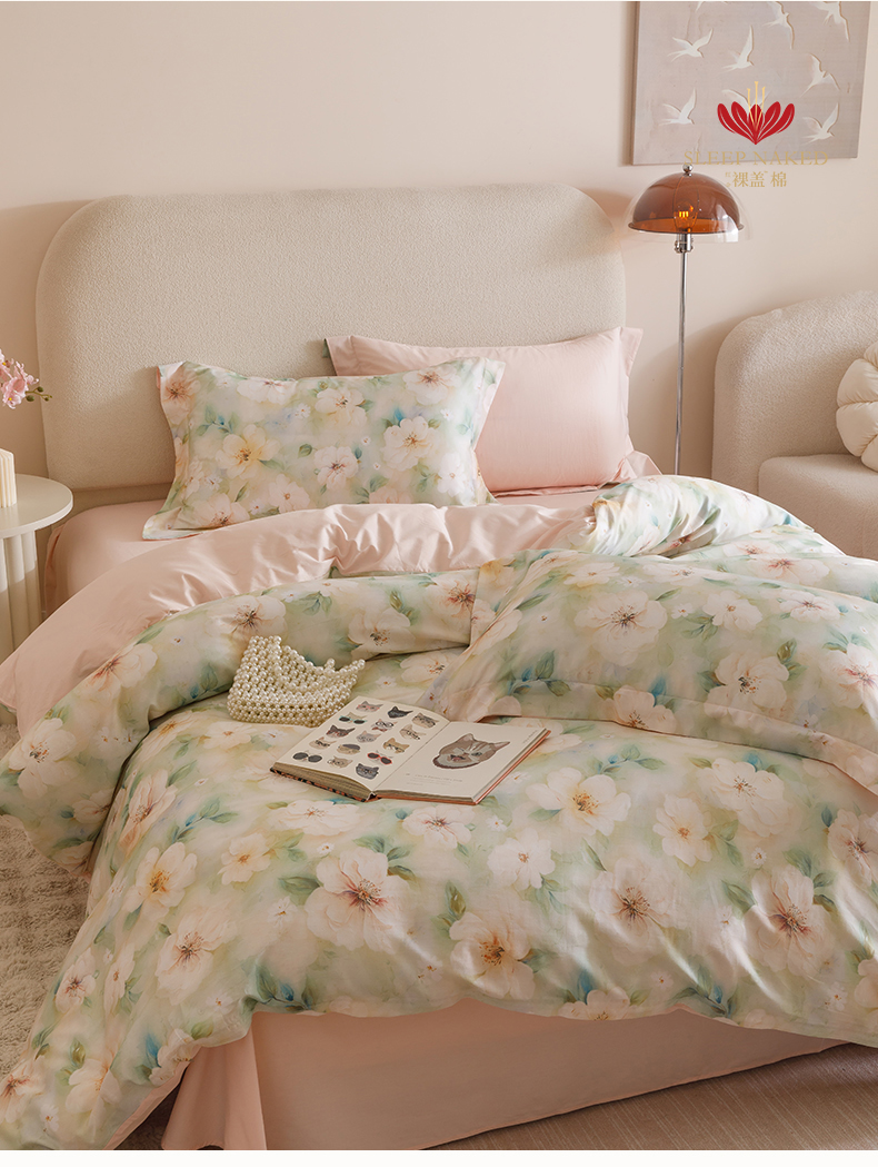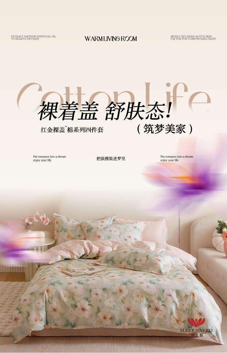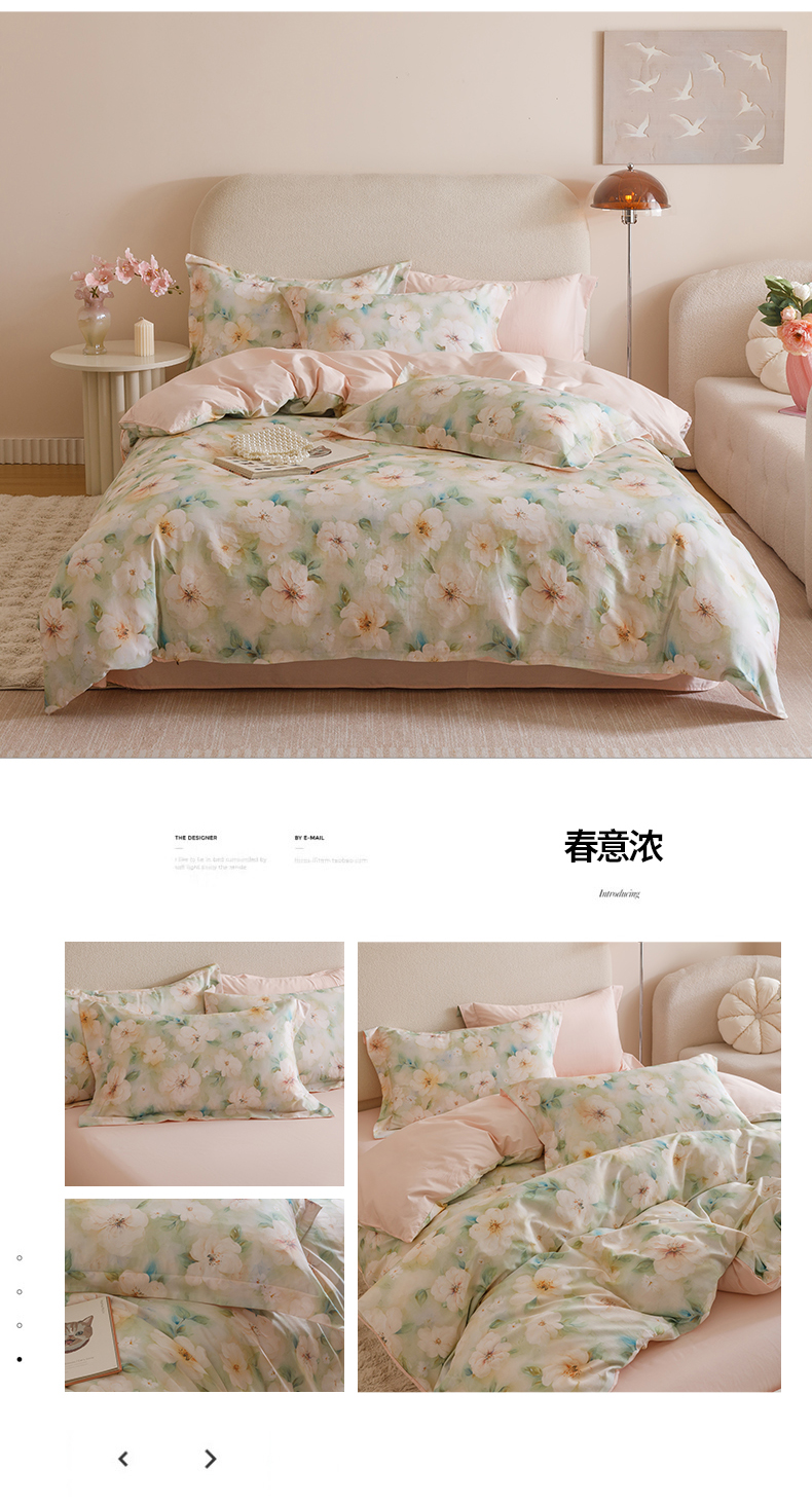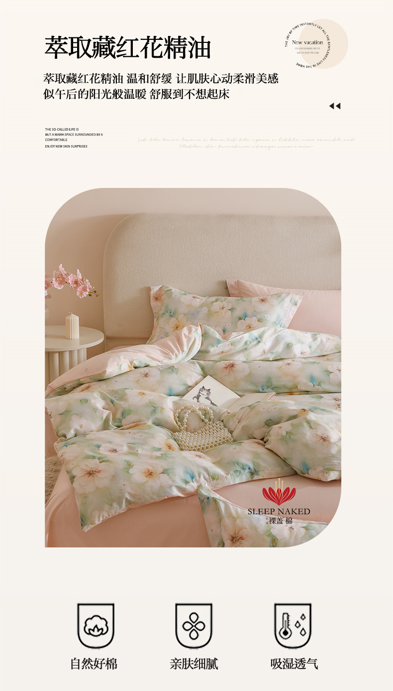 商品名称:2025新款全棉纯棉【如梦令】红金裸盖棉四件套【标准号全网控价(折后券后)不低于199元】 春意浓