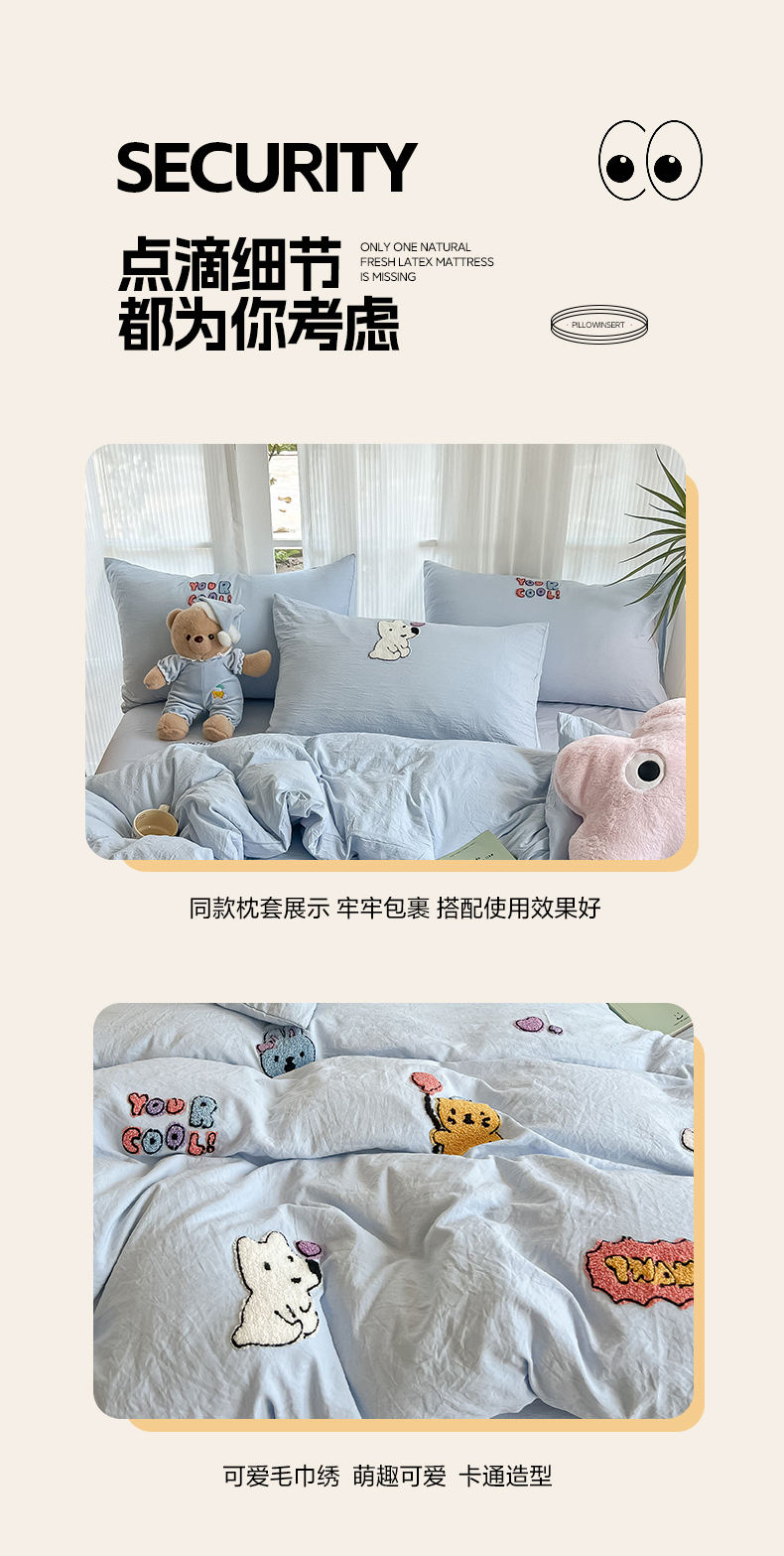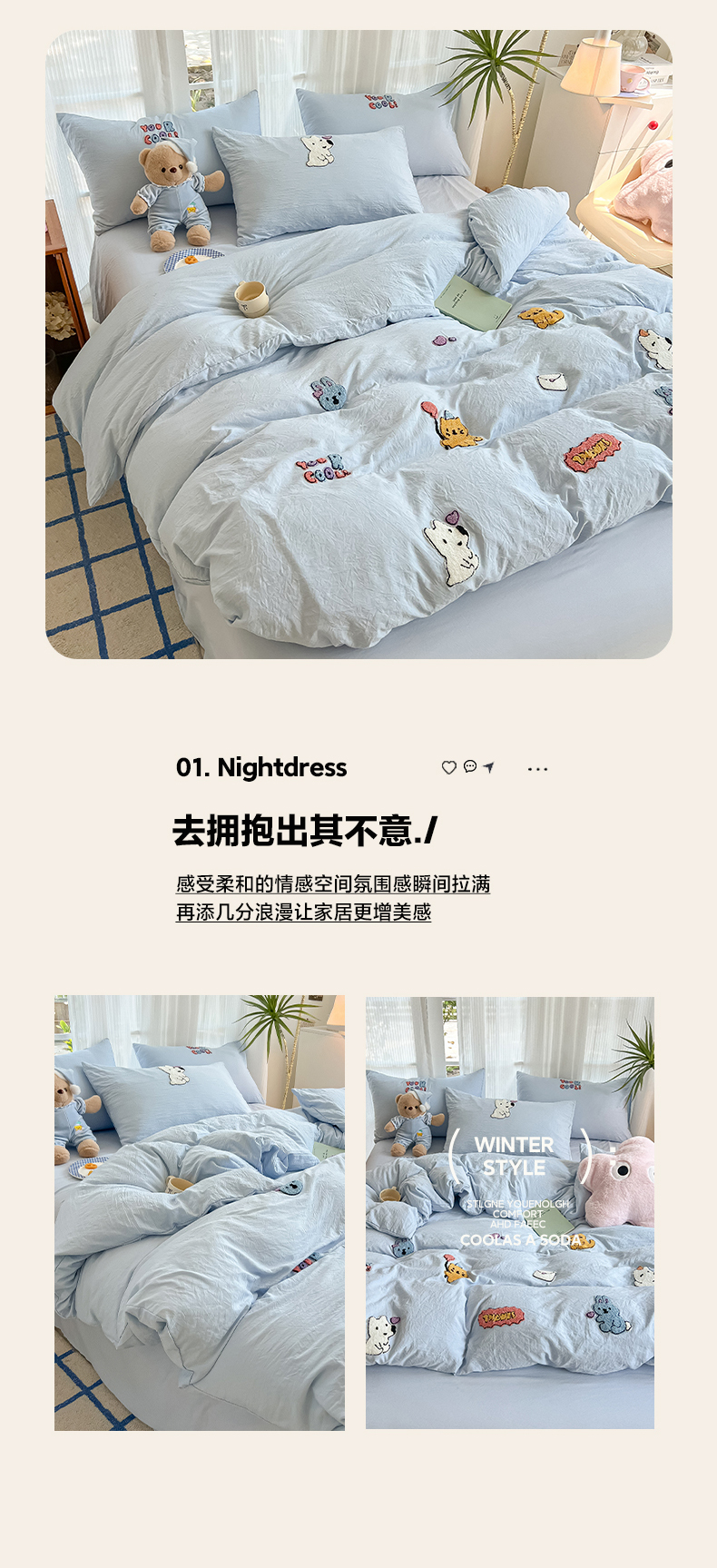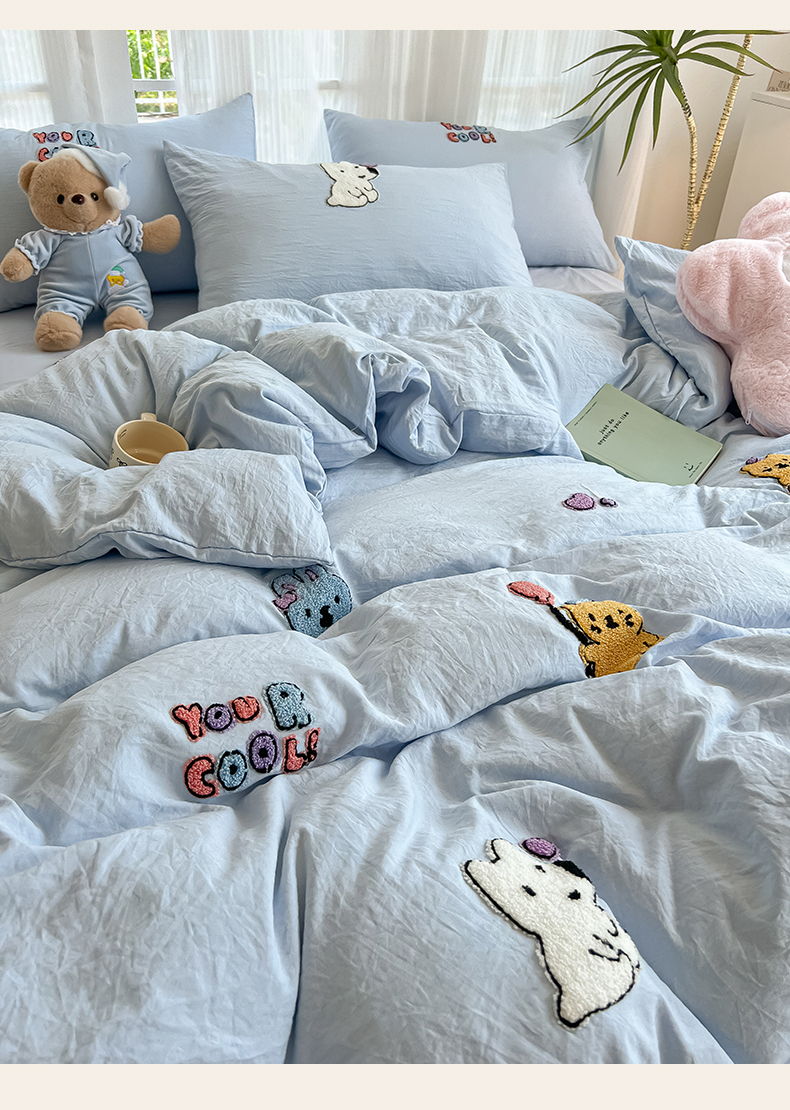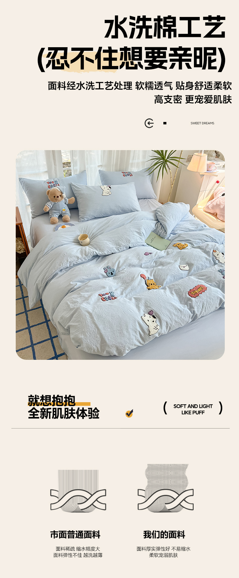 当前位置: 91家纺网 > 商品网购 > 床品套件 > 四件套 > 水洗棉四件套 > 韩巢家纺 2025新款超柔水洗棉毛巾绣四件套 动物乐园-浅蓝
