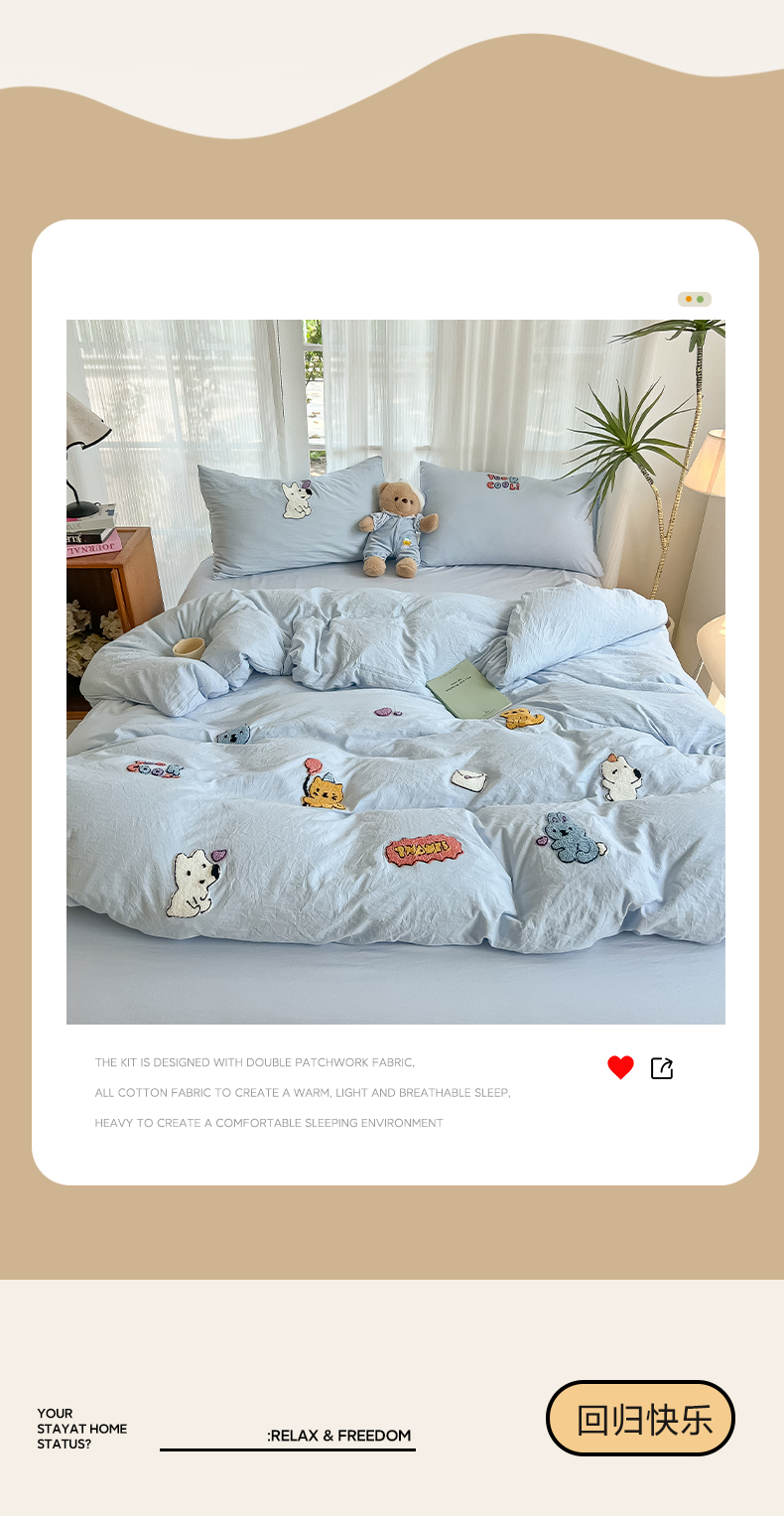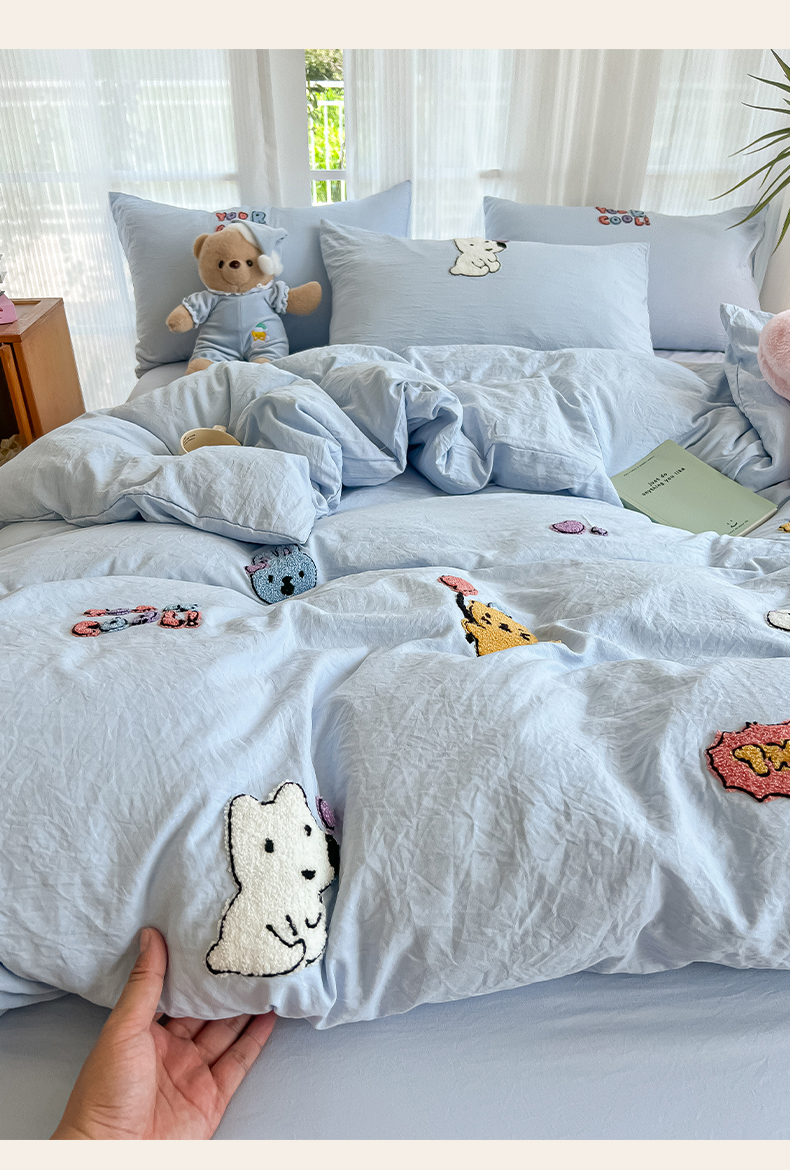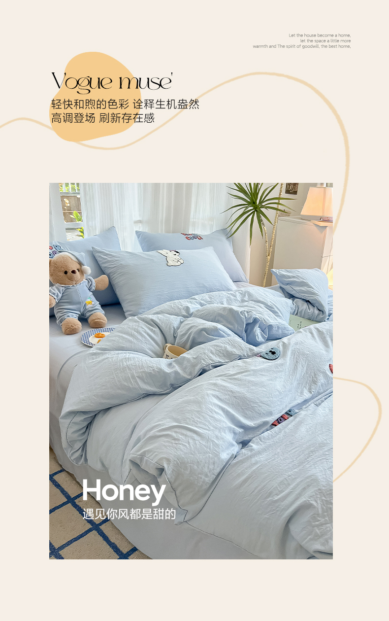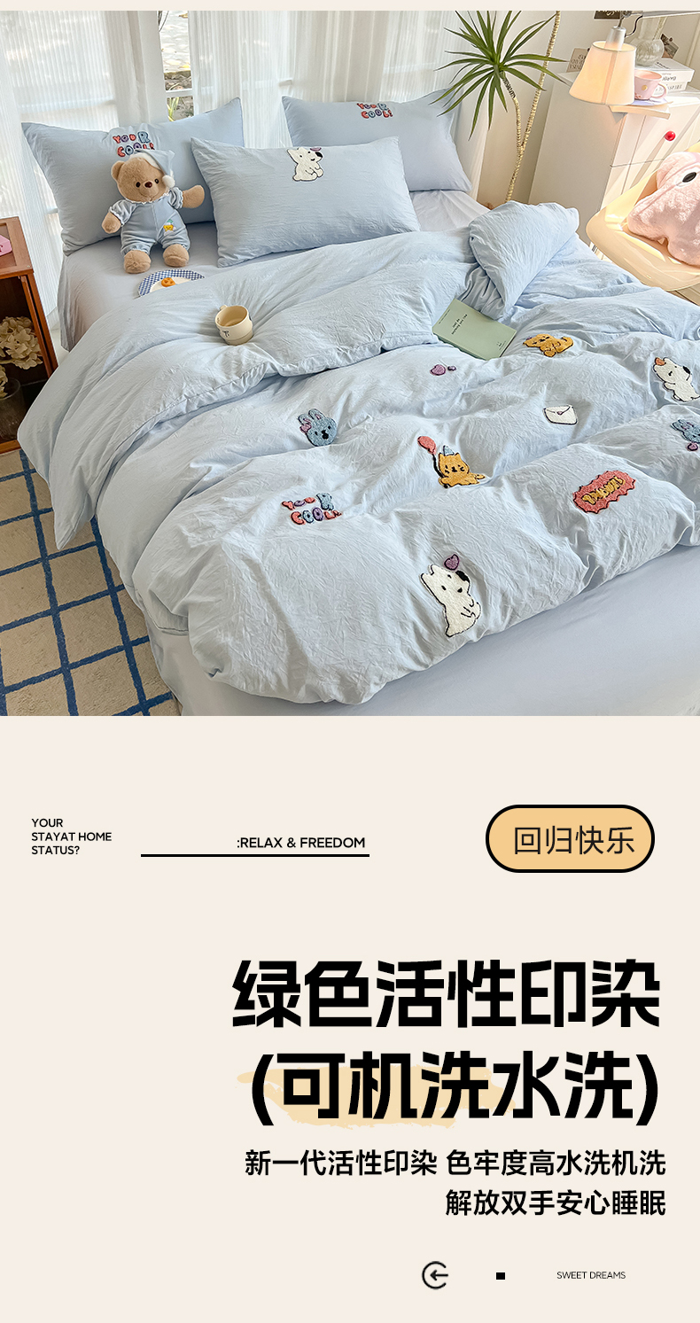 当前位置: 91家纺网 > 商品网购 > 床品套件 > 四件套 > 水洗棉四件套 > 韩巢家纺 2025新款超柔水洗棉毛巾绣四件套 动物乐园-浅蓝
