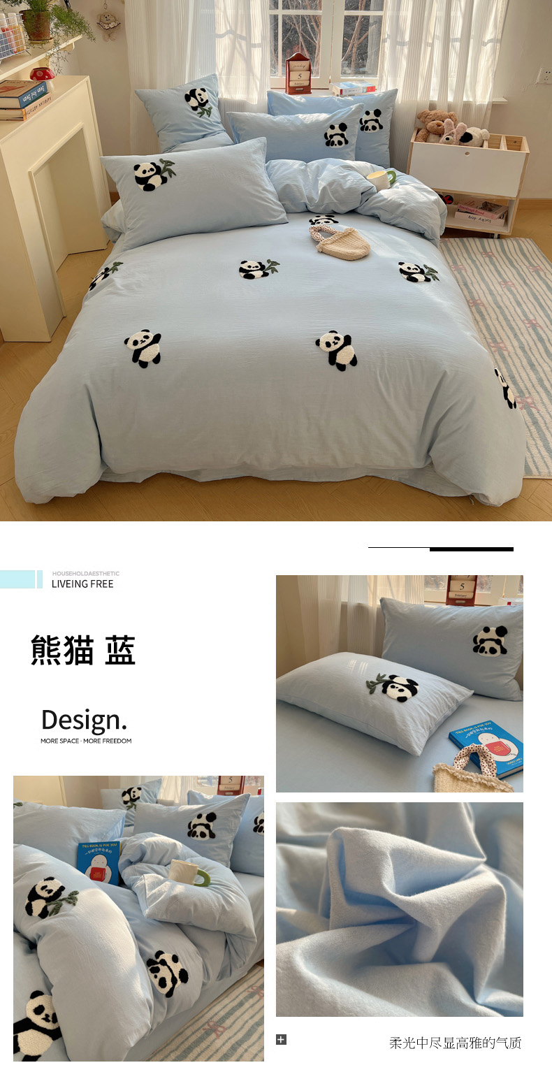 (总)2025新款牛奶绒+全棉毛巾绣四件套,背篓熊猫,乖乖熊,蔬菜庄园,甜甜圈,小比熊,摇摇马