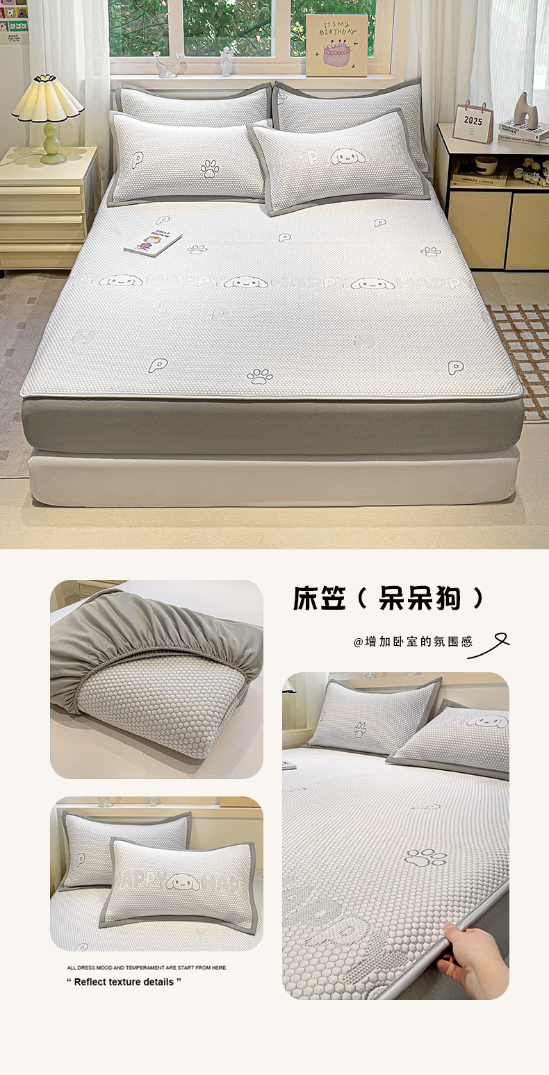 富馨莱 2025新款A类480克PE凉感凉豆豆凉席三件套和单件床笠款 绅士咖