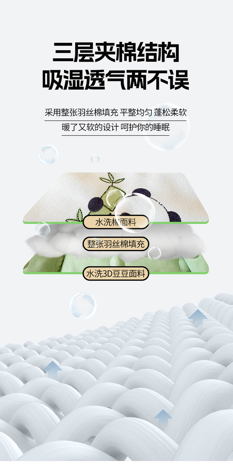 商品名称:壹张床 2025新款A类水洗棉3D豆豆夏被子被芯(提供买家秀) 竹子熊猫