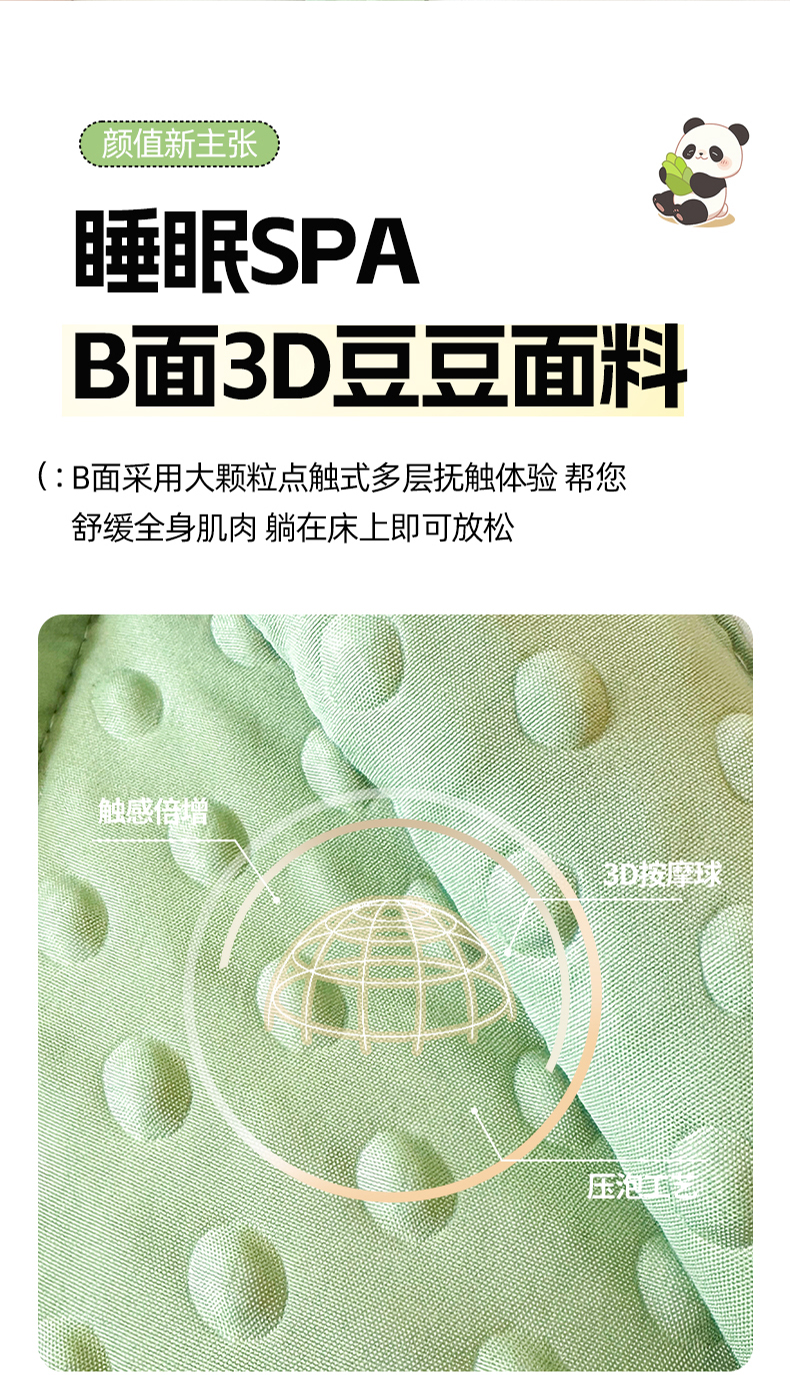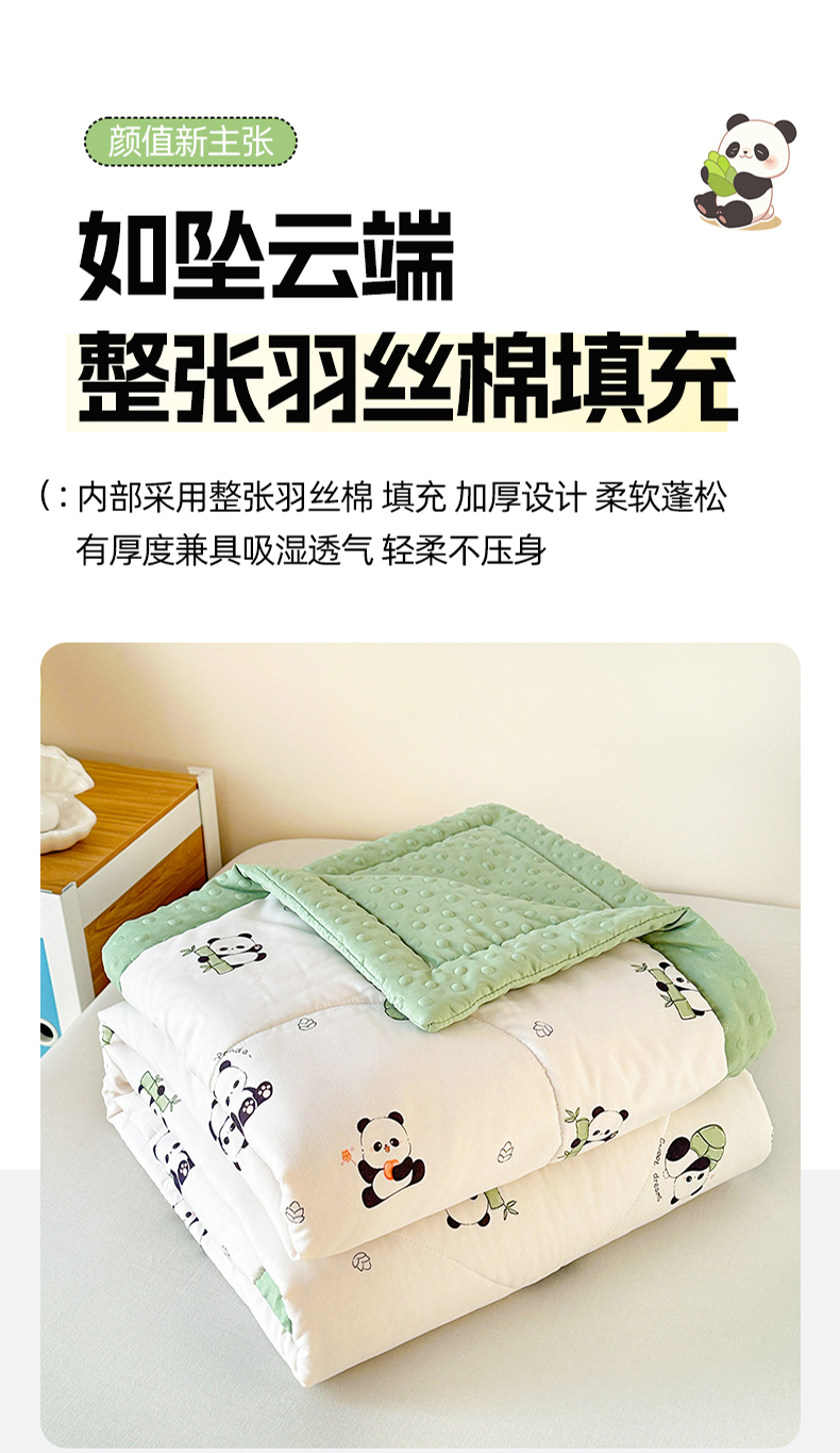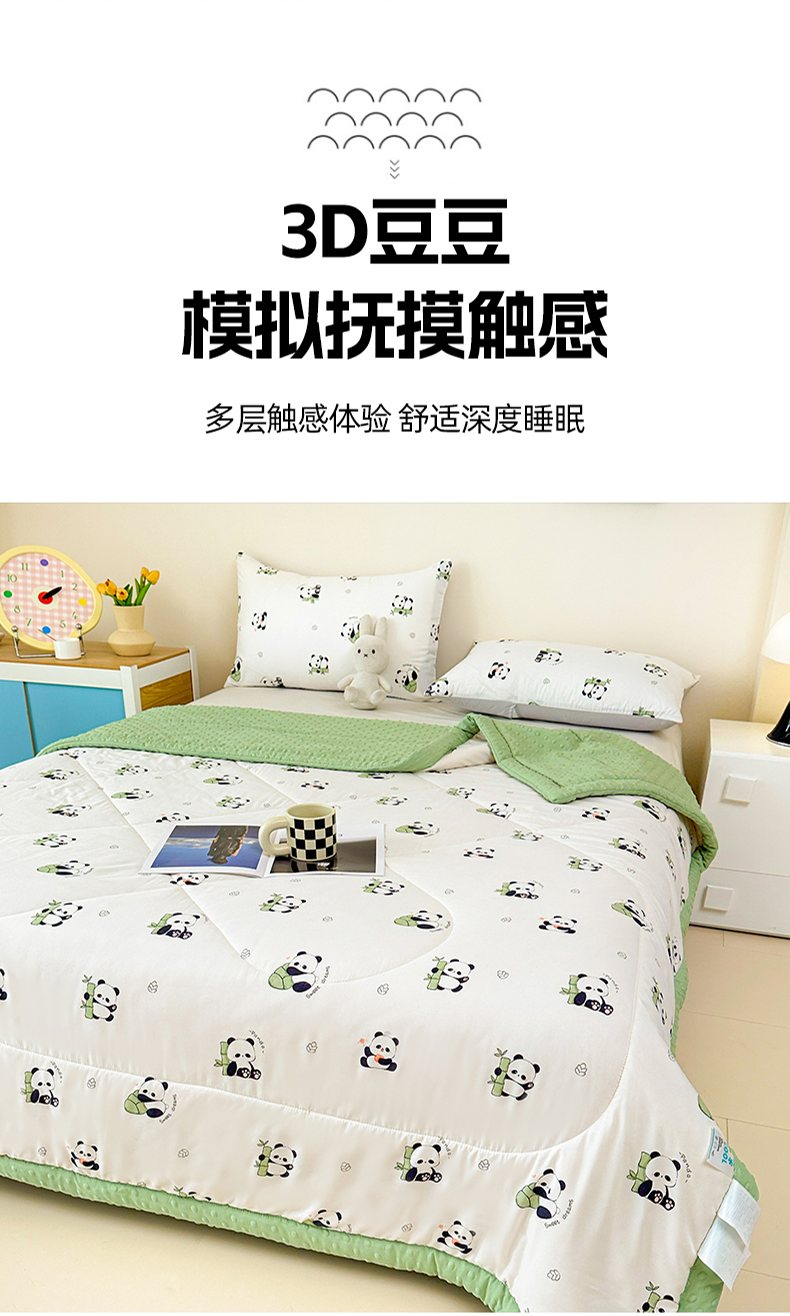 壹张床 2025新款A类水洗棉3D豆豆夏被子被芯(提供买家秀) 竹子熊猫