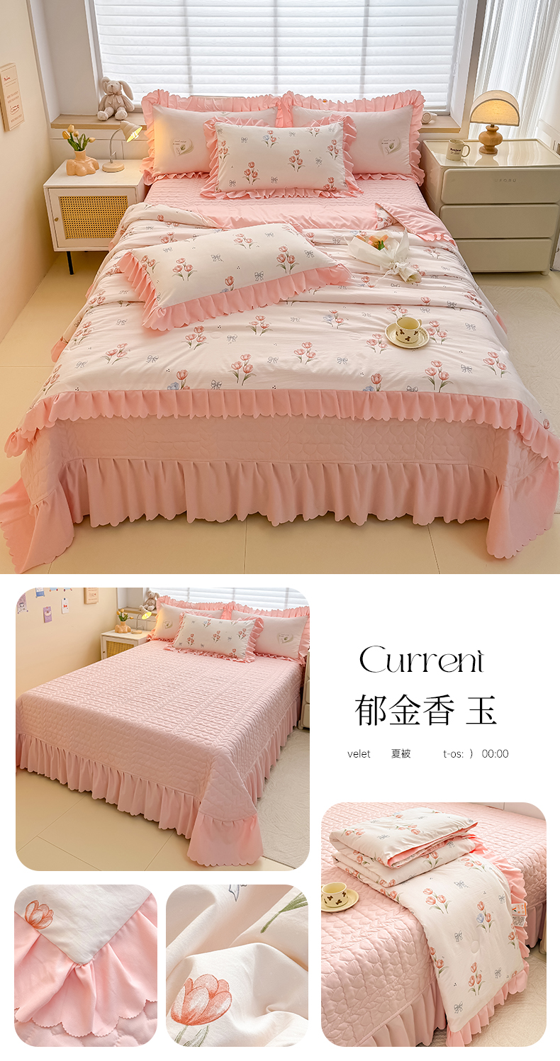 慕克斯 2025新款奶小棉韩版床盖款夏被四件套 郁金香-玉