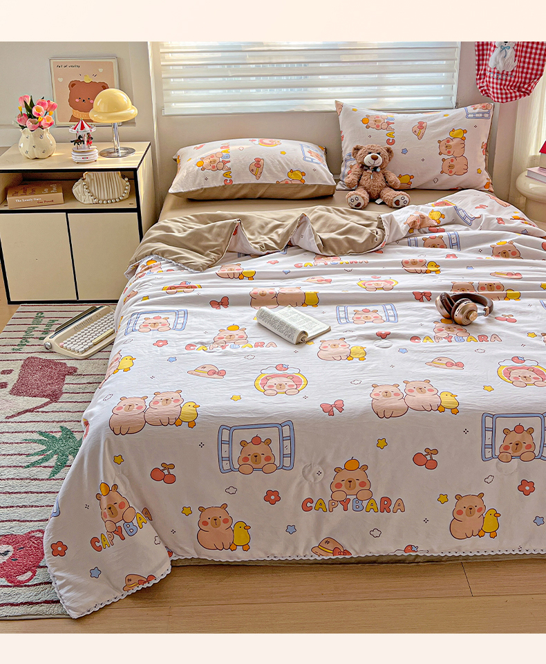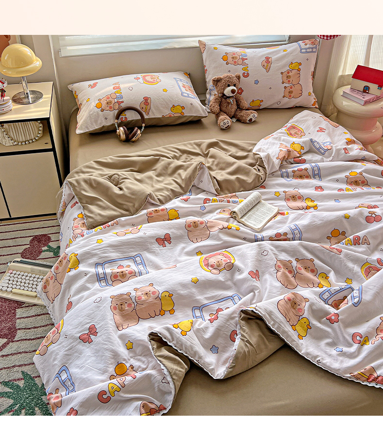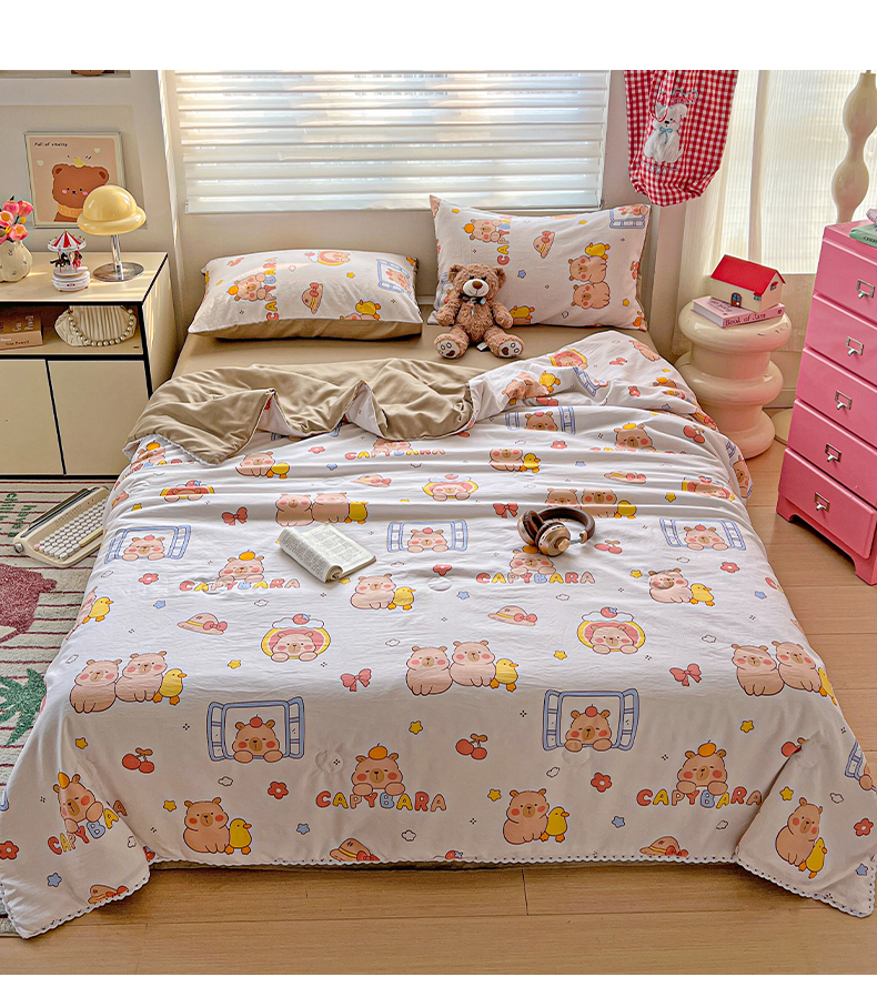 妖妖家纺2025新款糯糯夏凉被四件套夏凉被空调被 卡皮巴拉小伙伴