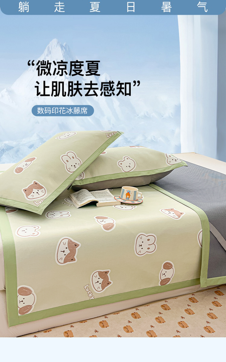 当前位置: 91家纺网 > 商品网购 > 床上用品 > 凉席 > 藤席 > 绒艺席业 2025新款600D冰丝印花数码印花冰藤席卡通小清新系列 可爱三小只
