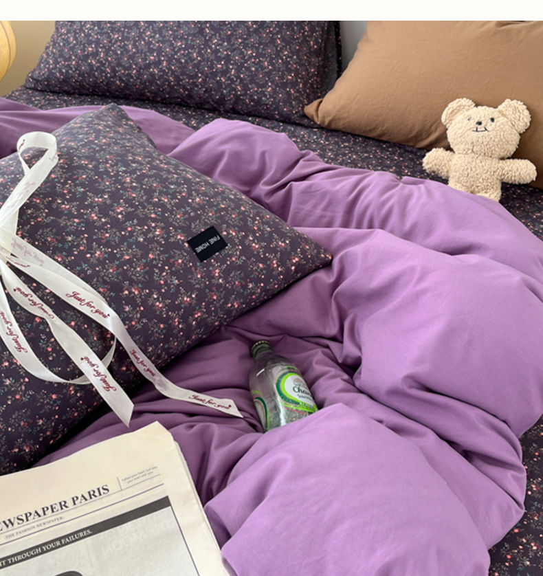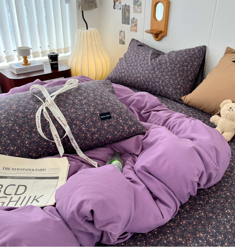 亿品家纺 2025新款水洗棉复古风格四件套 中古风-风韵紫