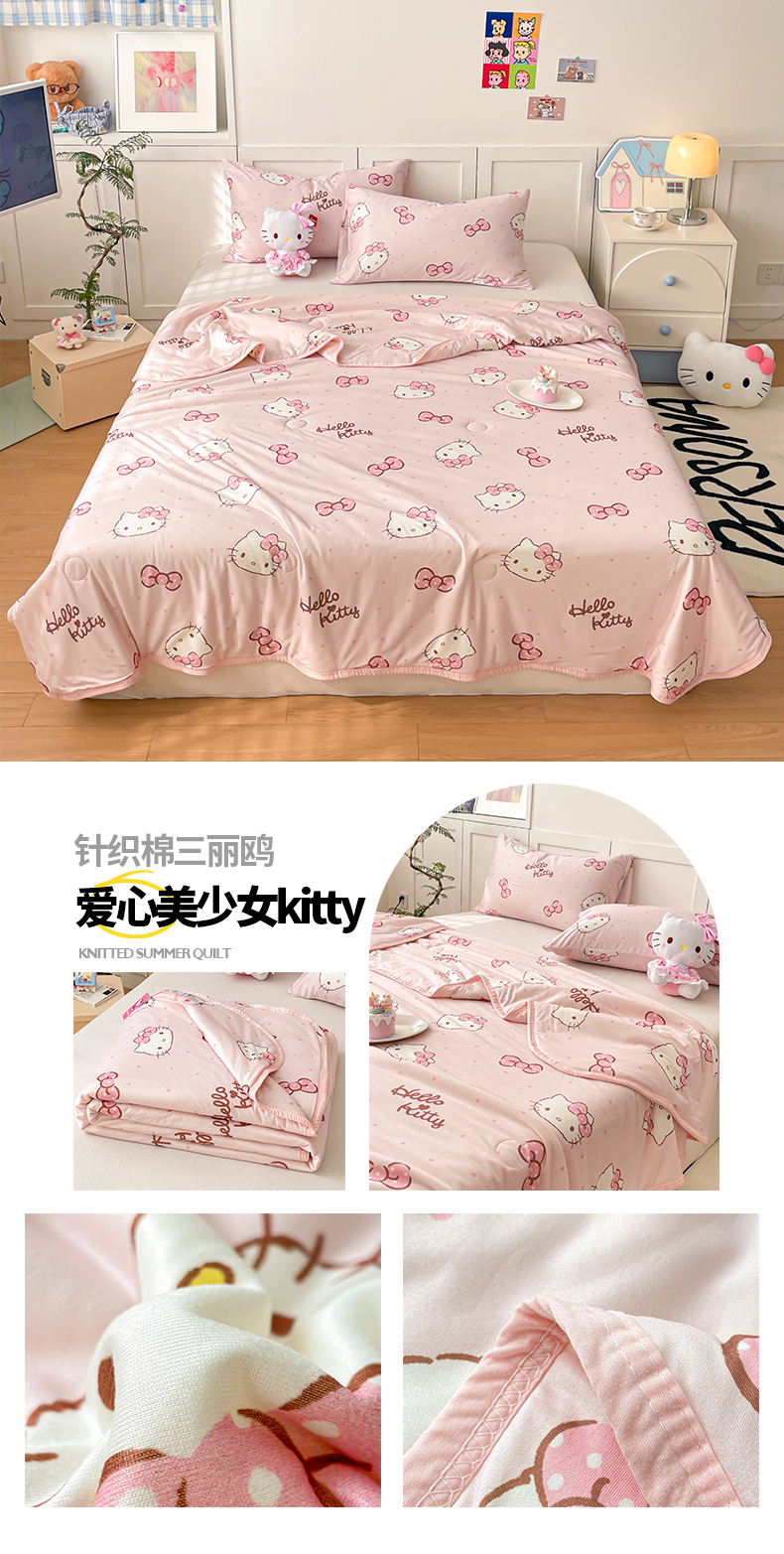 金爱家2025新款A类三丽鸥正版授权高品质牛奶丝软糯针织棉大豆夏被系列详情 针织棉三丽鸥-爱心美少女kitty