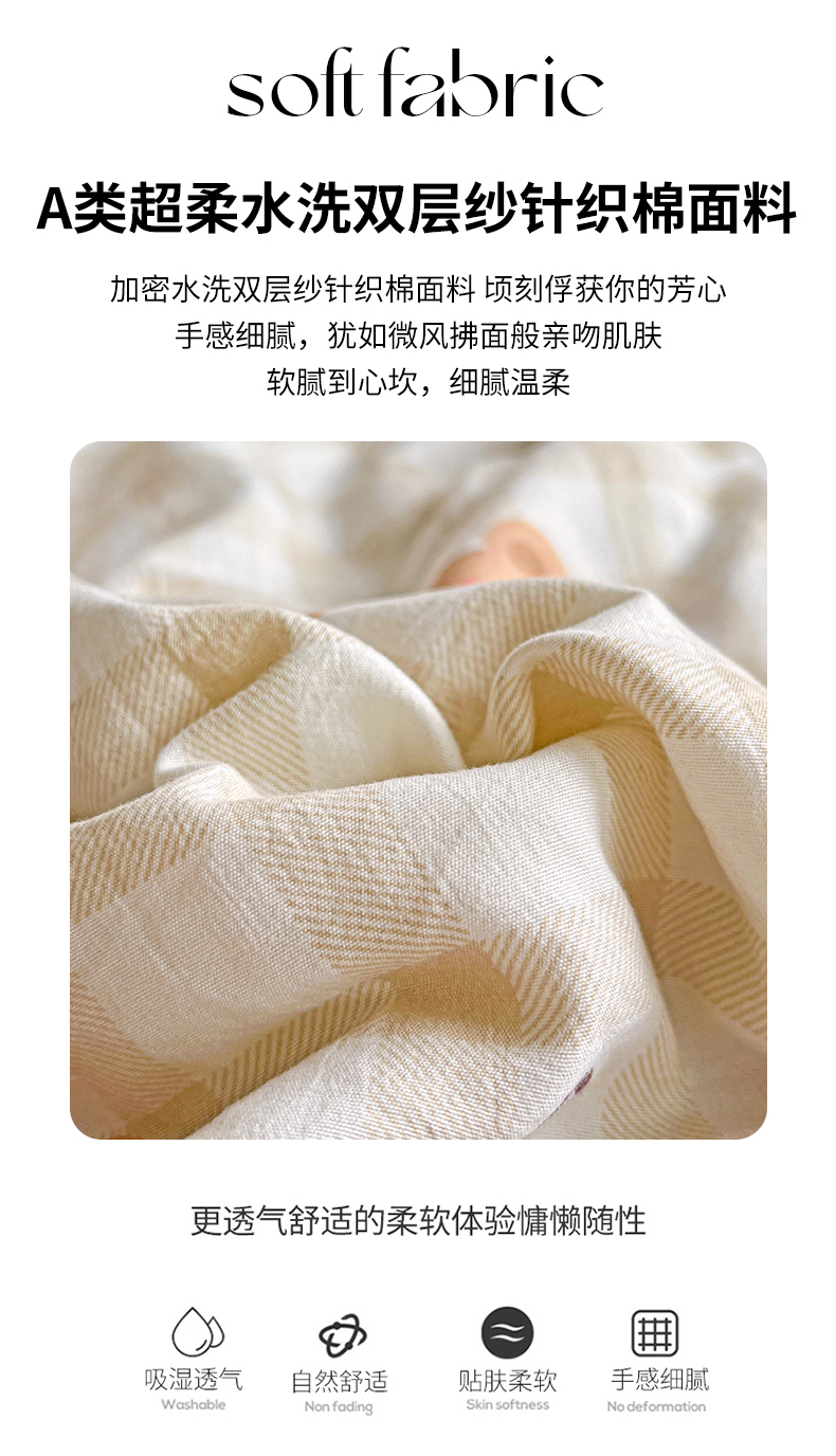 商品名称:(总)妖妖家纺 2025新款超柔双层纱糯糯针织棉夏凉被