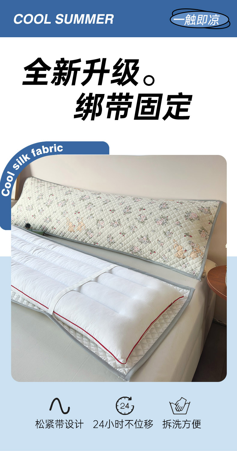 商品名称:(总)爱港家纺 2025新款凉感丝双人长枕巾 夏季情侣枕头巾 绑带长枕巾
