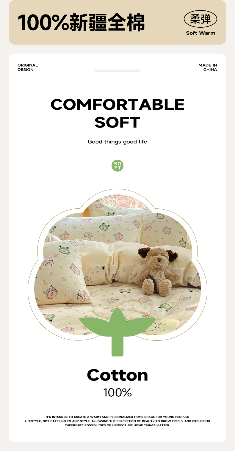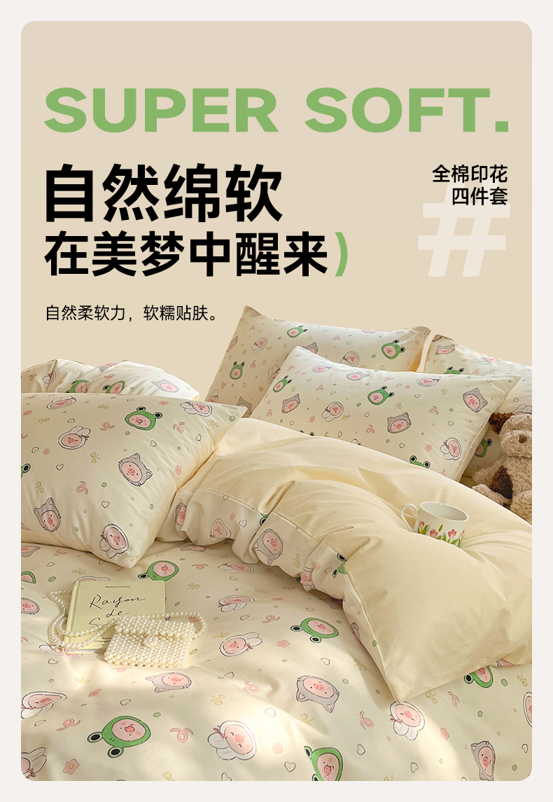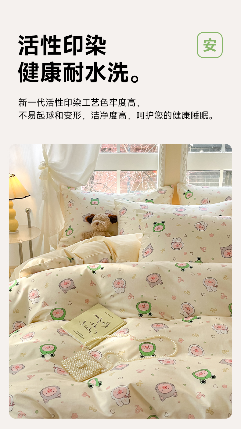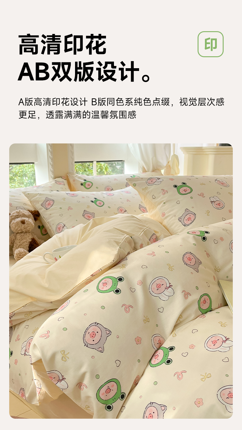 商品名称:仔仔熊 2025新款全棉印花四件套 粉红小猪