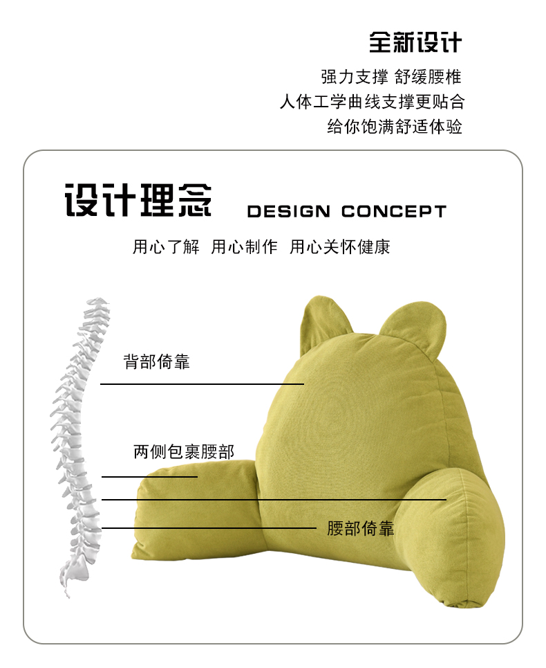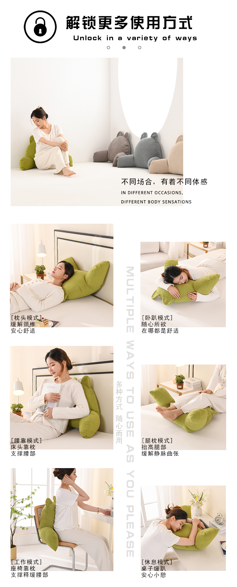 (总)囍莱家纺 2025新款床上靠山抱枕靠垫办公室护腰靠背垫客厅沙发卧室飘窗山形床头靠枕,组合图仅做展示,行政灰,茶色,橄榄绿